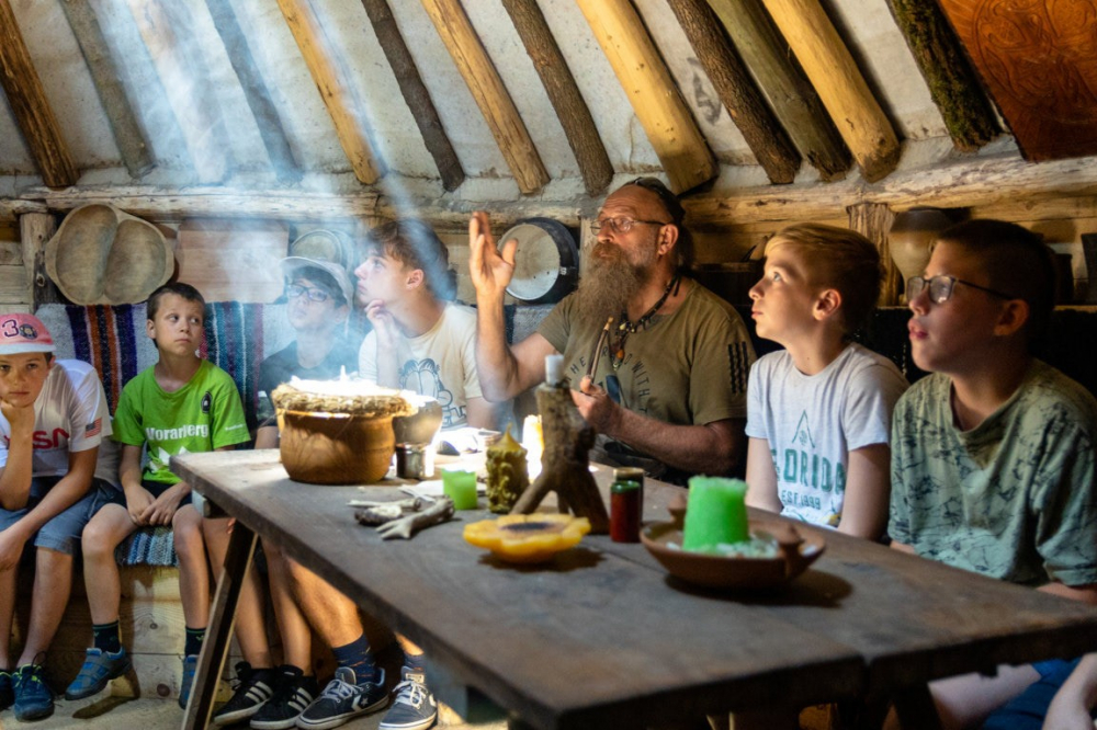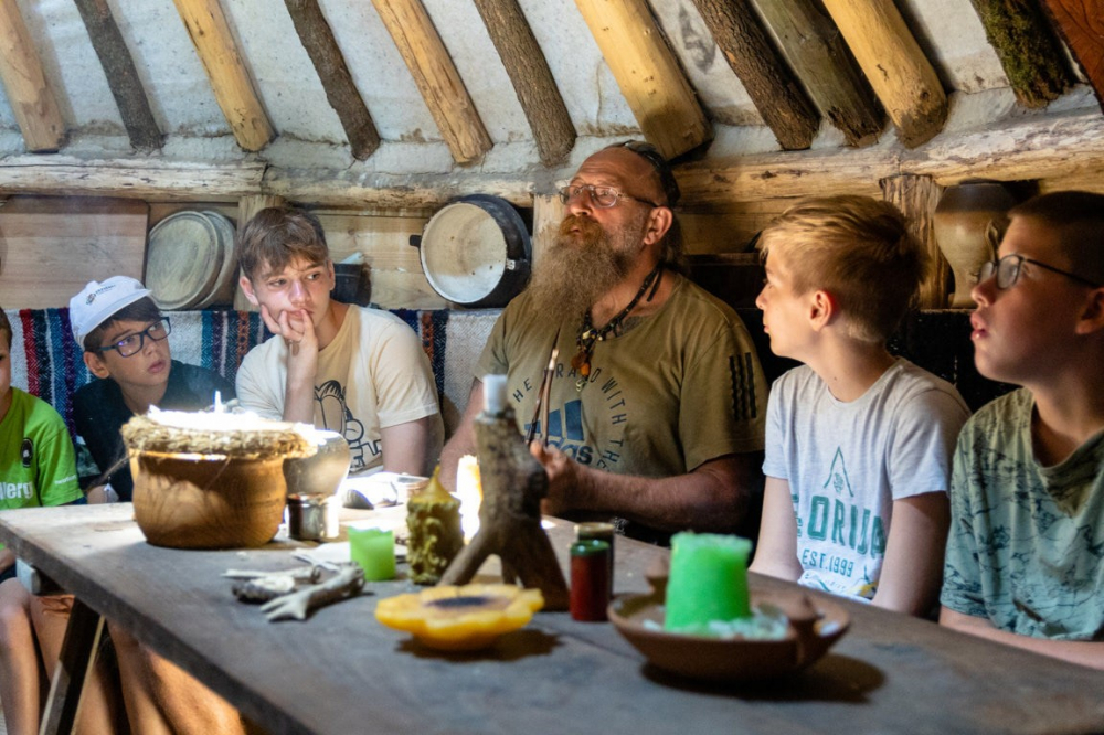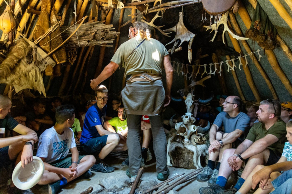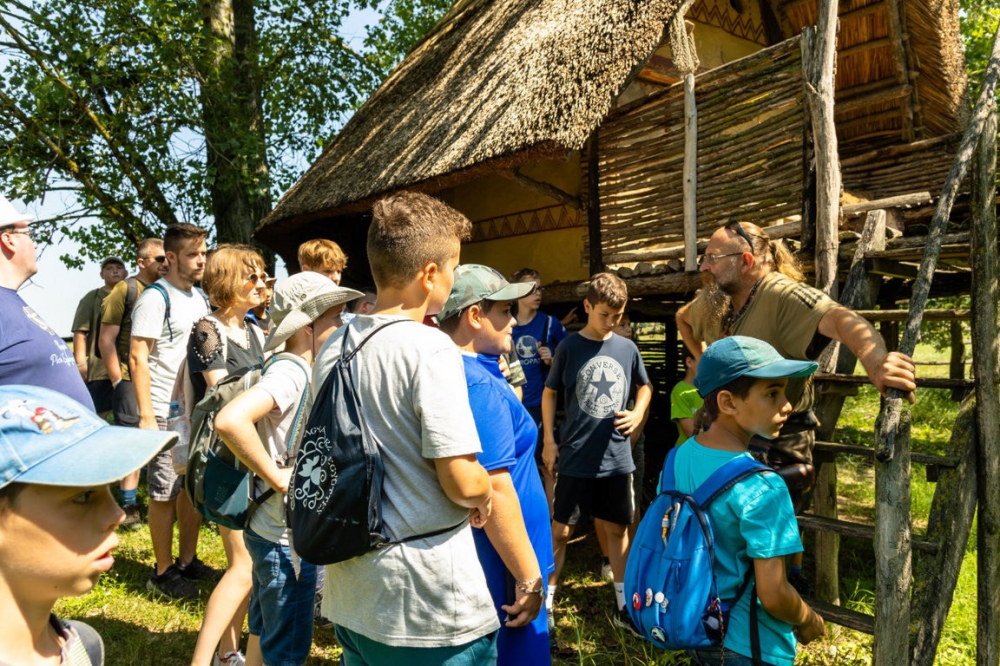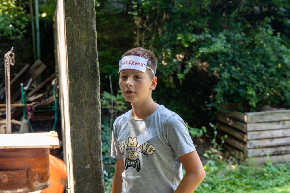 Pénteken a korábbiaknak megfelelően tornával, imával és reggelivel indult a nap. Ezek után Iloskics Mátyás adott elő az utolsó vacsora történetéről. A délelőtti program részeként elutaztunk a szomszédos Regölybe és megtekintettük Újszkítiát, ami egy kísérleti régészeti telep és egy több ezer éves település hiteles képét ábrázolja. Régészeti telepként működik, az adott korra jellemző házak, eszközök és fegyverek valódi időutazást nyújtottak számunkra. Miután visszaértünk Gyönkre és megebédeltünk, megkezdtük az előkészületet a záróestre. Szentmisével kezdődött, majd kiscsoportok által bemutatott színdarabokkal folytatódott, végül egyéni előadásokkal fejeződött be. Az esti program ekkor még korántsem ért véget: érkeztek ugyanis a tűzoltók és kezdetét vette a habparty! Egy fergeteges hangulatú este alakult ki belőle… A nap zárásaként tábortüzet gyújtottunk és körülötte különféle játékokat játszottunk. Az utolsó estére való tekintettel nem határoztunk meg időpontot, mikor csendesedjenek el a gyerekek.