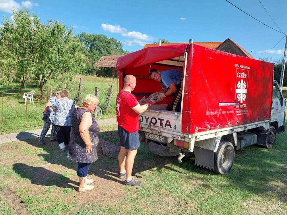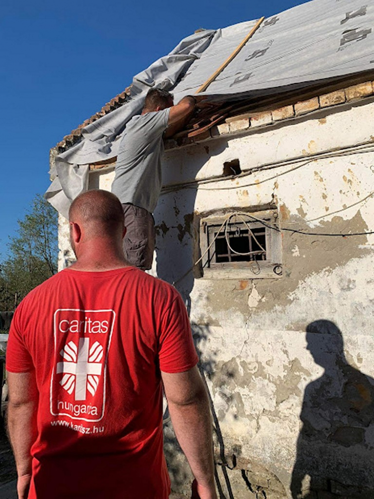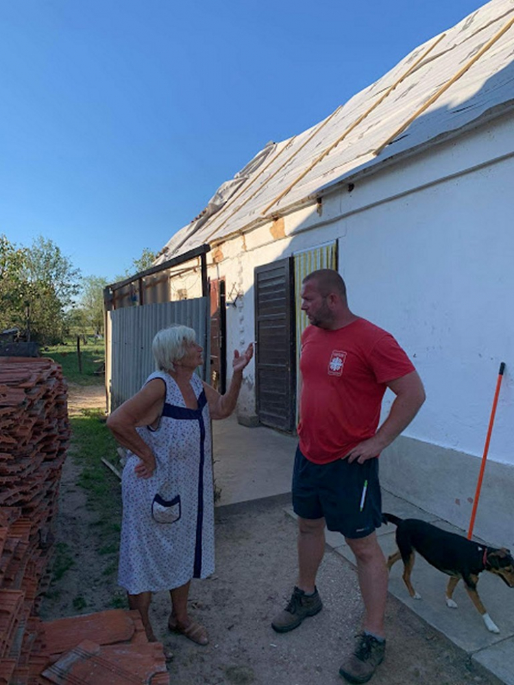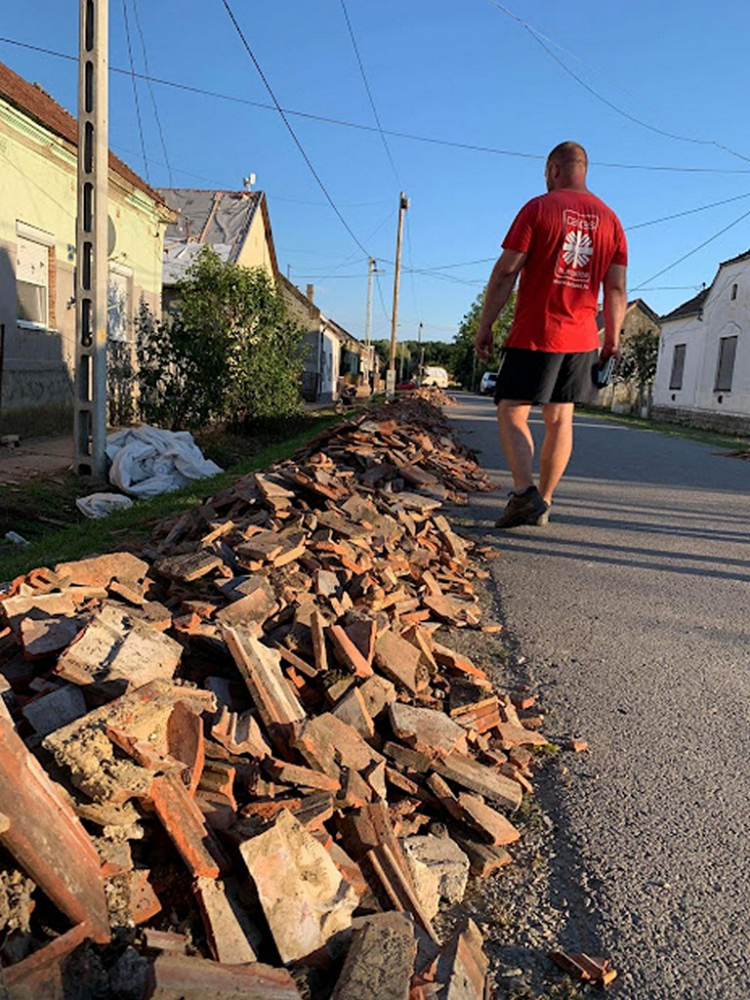 A Pécsi Egyházmegyei Katolikus Karitász munkatársai a vihar utáni nap már reggel a helyszínre érkeztek, hogy a Katasztrófavédelem irányítása alatt segítsenek a mentésben résztvevőknek. Gyorssegélyként konzerv élelmiszert, pékárut, zöldséget, gyümölcsöt, tányérokat, poharakat, evőeszközöket, fertőtlenítő szereket, darázsirtót szállítottunk a területre, továbbá frissítőpont működtetésével segítettük a Katasztrófavédelem önkéntes és hivatásos állományát. A szakemberek feladata a megsérült és életveszélyes tetőcserepek eltávolítása és a házak fóliával történő ideiglenes lefedése volt, ami a következő időszakban várható eső ellen nyújthat védelmet. A katasztrófa utáni napon már elindult az adományok felajánlása is a településekre, ezek főleg tetőcserepek, faanyagok, fóliák, melyek elosztásának koordinálásában szintén tudtunk segíteni a helyi önkormányzatoknak.