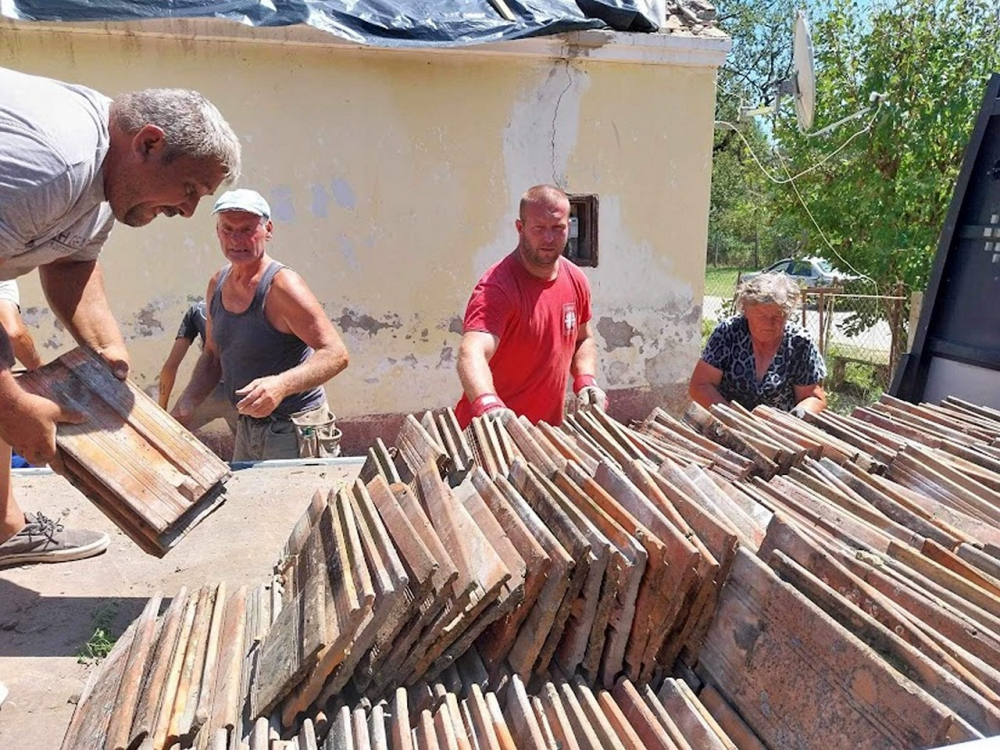 A helyreállítás megkezdéséhez az első héten a Pécsi Egyházmegyei Katolikus Karitász 6 000 db használt cserepet, több száz folyóméter tetőlécet, épületfákat, bádogos termékeket szállított magánszemélyek és cégek jóvoltából a helyszínre.