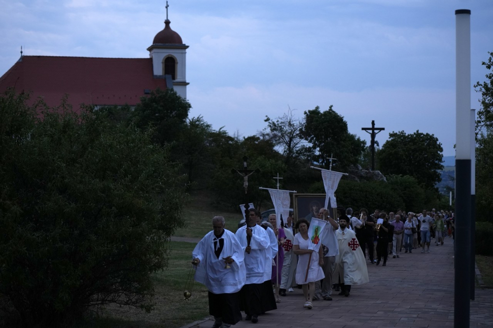 A szentmise után a hívek, a zarándokok és a papok a Boldogságos Szűzanya tiszteletére Egyházunkért, a Pécsi Egyházmegyéért, a templom közösségéért és Pécs városáért imádkozva körmenetetben kísérték a Havas Boldogasszony-kegykép másolatát a templom melletti Havi-hegyi sétányon.