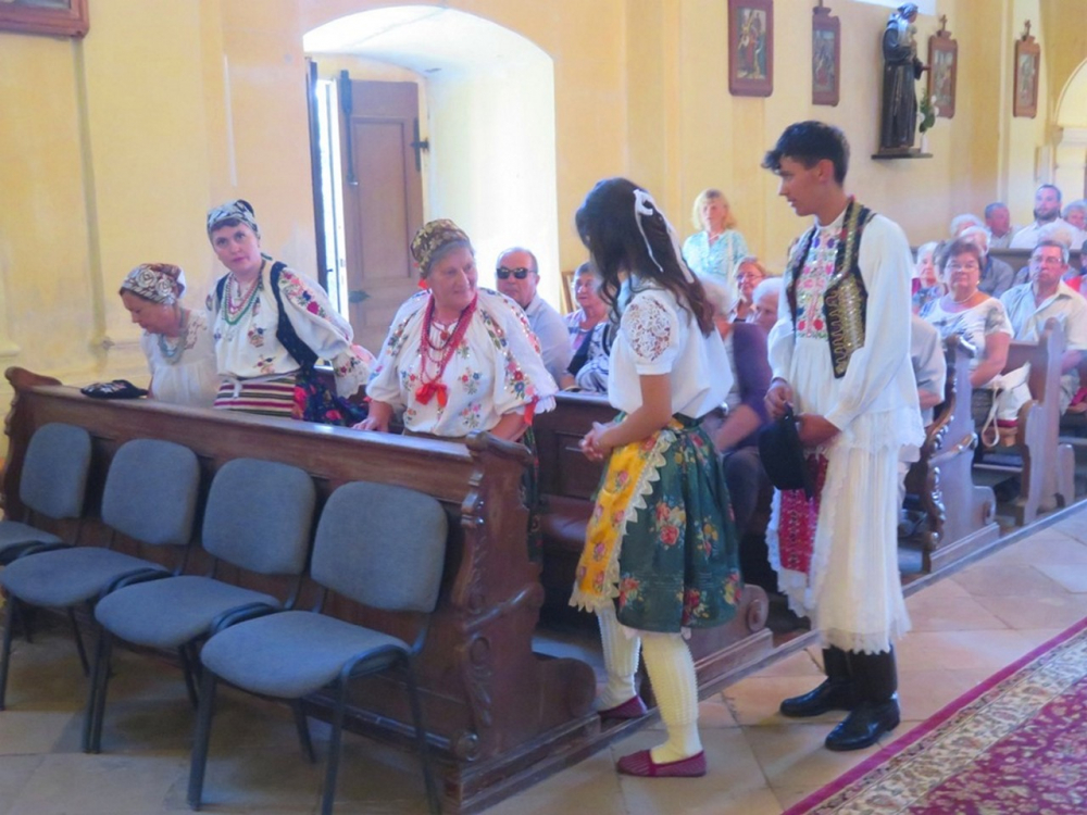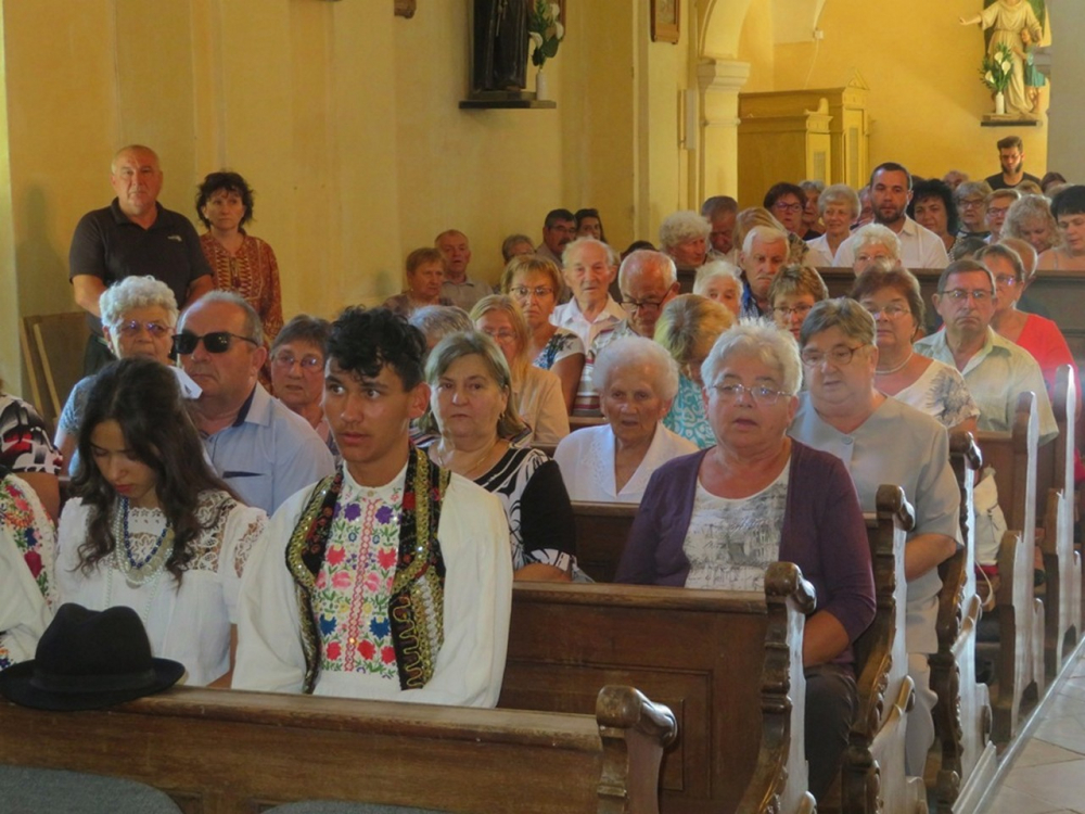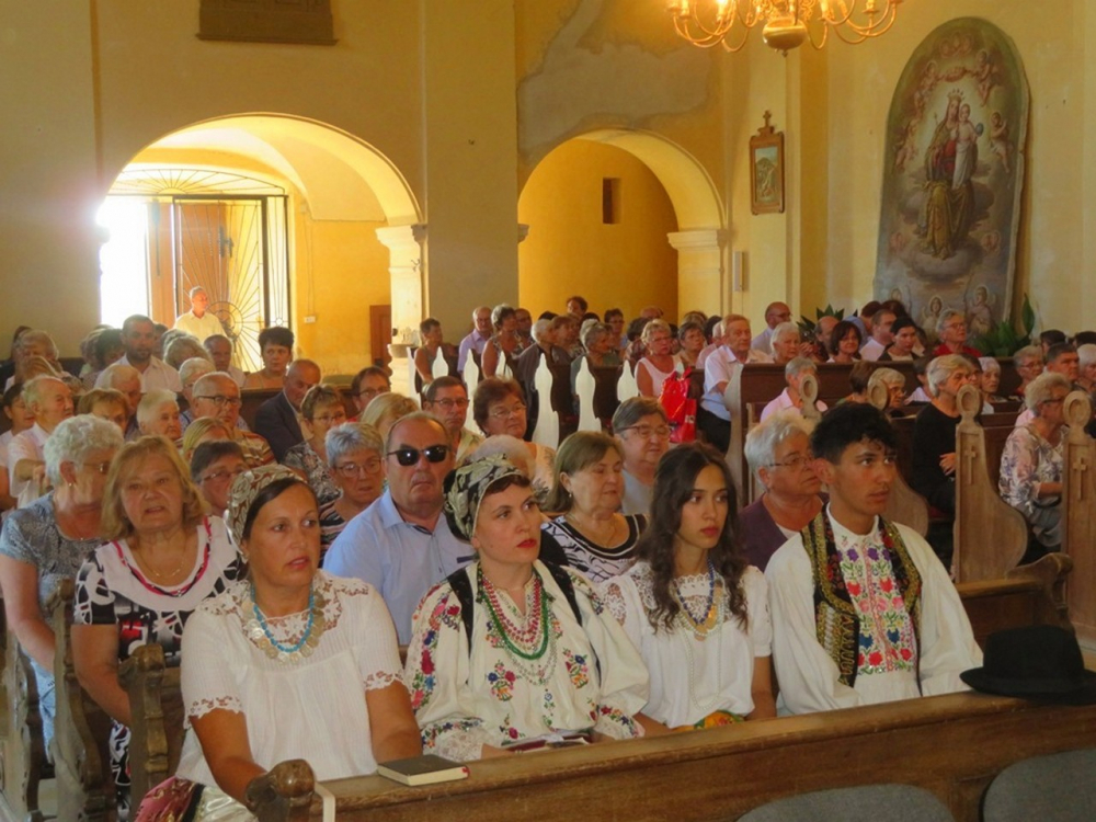 Bukovics István, a helyi közösség plébánosa köszöntötte Felföldi László megyéspüspököt, Fábiánné Mester Rita polgármestert, a kórus tagjait, a zarándokokat, híveket, köztük a népviseletbe öltözötteket.