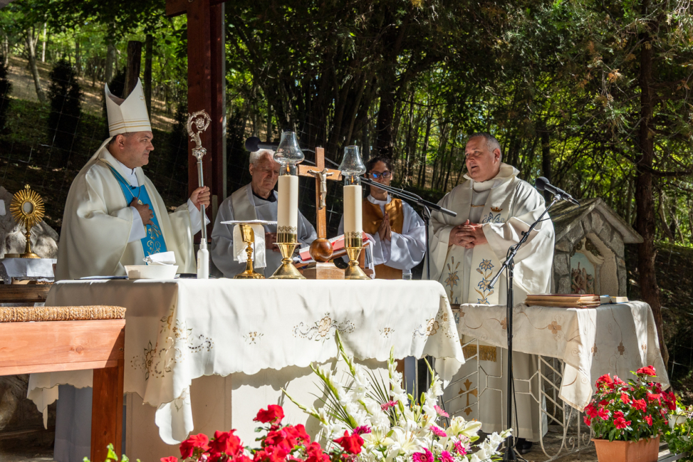 Felföldi László püspök Mária életének üzenetét állította elmélkedése fókuszába: „Mária felkelt, és útnak indult” (Lk 1,39). A megyéspüspök főpásztori buzdítással fordult a megjelentekhez, arra kérve őket, hogy azokon a településeken, ahol már nincs lehetőség rendszeresen szentmisét celebrálni, jöjjön össze a Szent István-i tíz falu közössége, gyűljön össze tíz család vagy tíz ember. De Jézus ennél is tovább megy, fogalmazott a szónok: „Ahol ugyanis ketten vagy hárman összegyűlnek a nevemben, ott vagyok közöttük.” (Mt 18,20)
