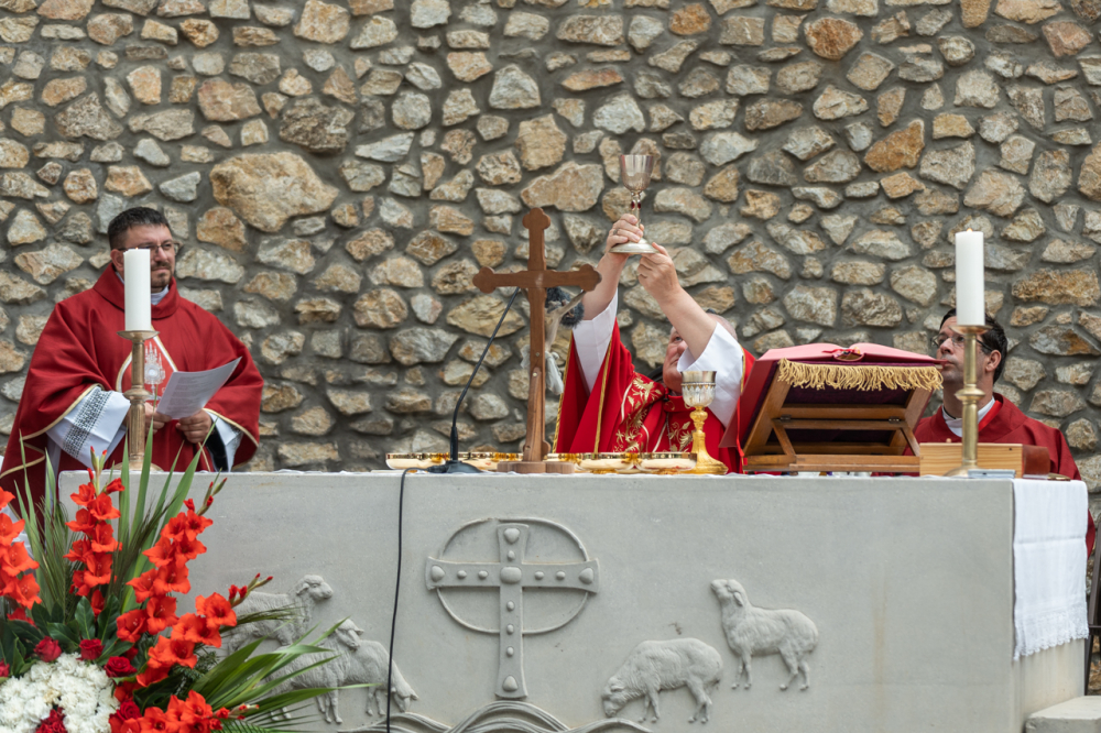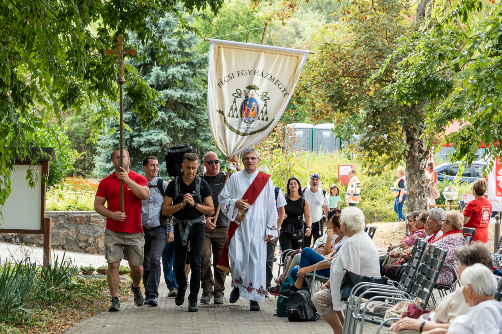 A zarándoklat ünnepi szentmiséjét a kegyhely szabadtéri oltáránál, a Szent Vér-ereklye közelségében celebrálta Bíró László nyugalmazott püspök, aki szeretettel köszöntötte a Pécsi Egyházmegye papjait, a megjelent állami és társadalmi szervezetek képviselőit és a zarándoktestvéreket.