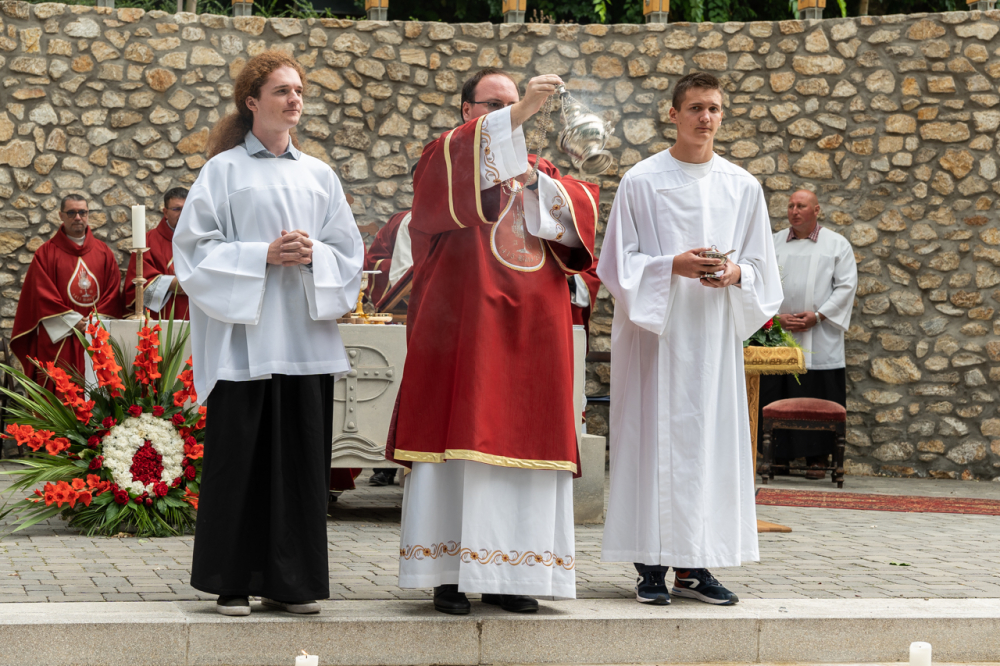 Ne higgyük azt, hogy avítt áhítat követői vagyunk a Szent Vér tiszteletében, hanem inkább egy olyan tisztelet részesei, ami ezen a szent helyen újjászületőben van, ami meggyógyíthat bennünket és jövőt adhat ennek a településnek és a hazánknak is – zárta homíliáját Bíró László püspök. A szentmise eucharisztikus körmenettel zárult.