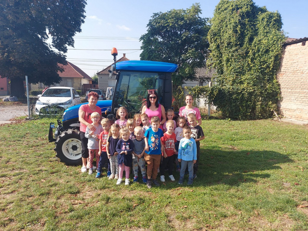 Kedden vidám daloktól, mondókázástól volt hangos az óvoda. Az ősz hangulatának érzékeltetése irodalmi-, és zenei anyagon keresztül, mozgással kísérve, komplex módon jelent meg a zene-ovi foglalkozások alkalmával. Az őszi betakarítási munkákról a traktorral való ismerkedés adott lehetőséget játékos tapasztalatszerzésre.