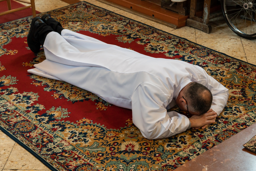 A szertartás a jelölt ünnepélyes ígérettételével folytatódott, majd a szentelendő arcra borulva, míg a hívek térdre borulva énekelték a mindenszentek litániáját, amit a felszentelés követett, melyben a püspök kézfeltétellel adta tovább az apostoloktól kapott lelki hatalmat. Ezt követte a beöltözés, valamint az evangéliumos könyv, mint az igehirdetés szimbólumának átadása. A főpásztor, a jelenlévő papok és diakónusok békecsókkal köszöntötték a felszenteltet, aki a szentmise áldozati részében a püspök jobbján segédkezett.