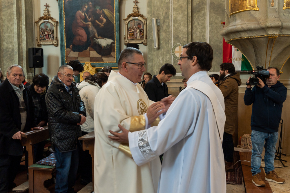 Végezetül a főpásztor az életünk nagy titkának nevezte mindnyájunk sorsát, az életünket, amit ajándékba kaptunk. Nagy öröm, hogy itt vannak most a szülők, akik igent mondtak erre az életre. Az élet, az ajándék részeként akkor valós, ha mi is ajándékként akarjuk megélni és szolgálni vele. Isten most megajándékozott minket veled és általad és válj továbbra is ajándékká. Légy jel számunkra, hogy megtaláljuk, hogy sokan nyomodba lépve megtalálják Isten hívását, Isten szavának életet adó örömét és felfedezzék ennek a szeretetnek mindent betöltő gazdagságát, hogy ajándékozhassuk ezt a szegény, koldus, könyörgő, magányban és félelemben élő világot az emberi, közösségi, családi kapcsolatok útján az emberi szeretet és istenszeretet örömével és békéjével - intézte szavait Szőts Gáborhoz a főpásztor.