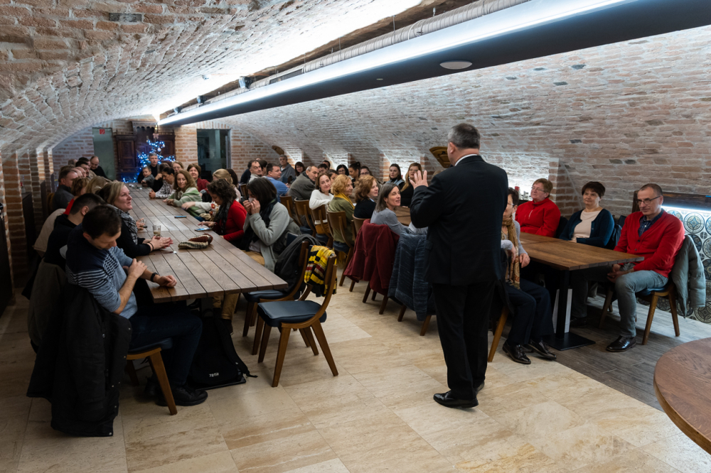 A hivatal mintegy 60 munkatársa volt jelen a Jézus Krisztus születésének ünnepét megelőző adventi készületen. A Magtár Látogatóközpontban december 21-én megtartott lelkiségi programot, melyen Máger Róbert püspöki irodaigazgató, Kovács József püspöki titkár és Mihovics Szebasztián diakónus, a Pécsi Egyházmegye papnövendéke is részt vett, Garadnay Balázs, a pécsi Szent István-templom plébánosa vezette.