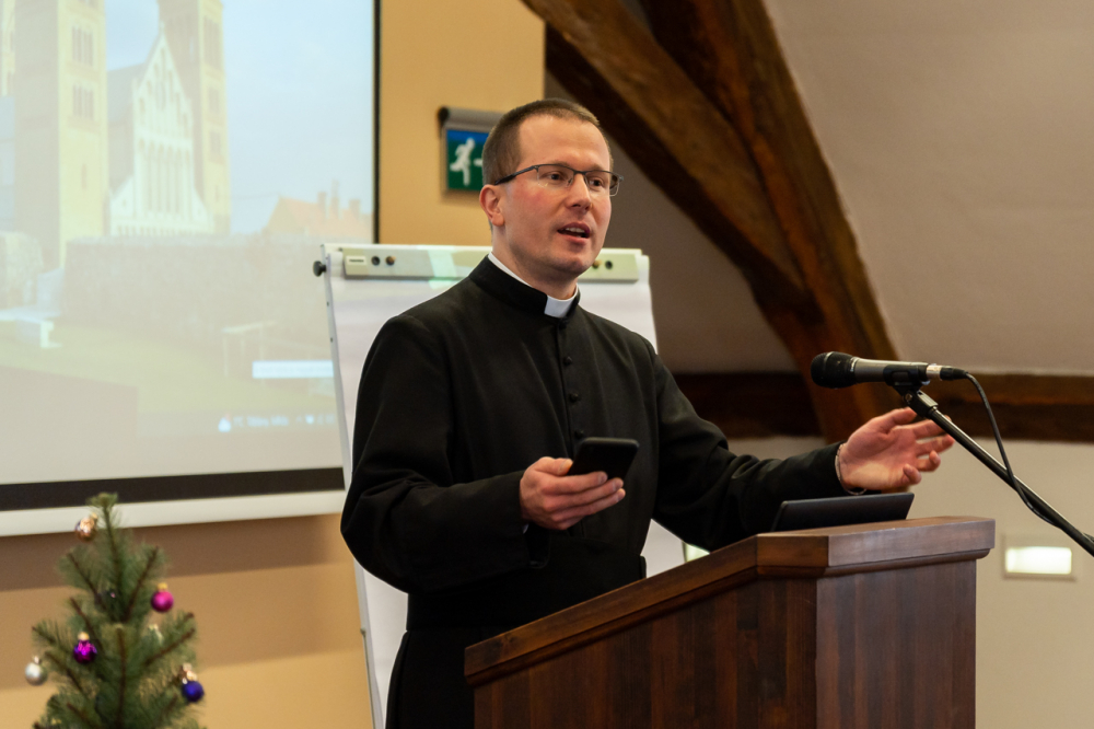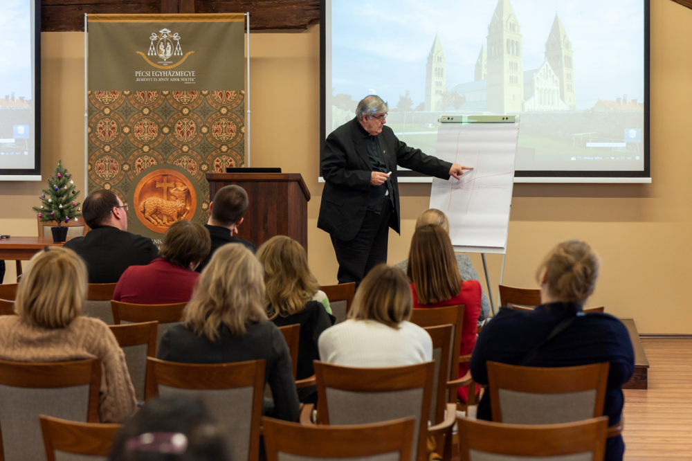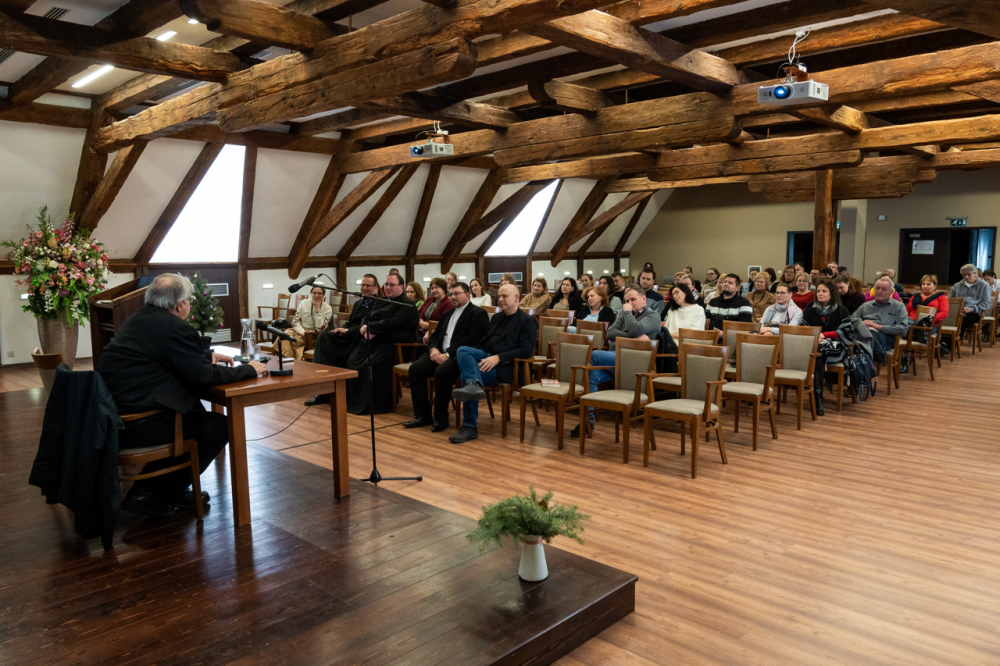 Máger Róbert püspöki irodaigazgató köszöntő szavaiban a lelki élet mélységeire való odafigyelésre biztatta a lelkinap résztvevőit a karácsony előtti utolsó intenzív időszakban.