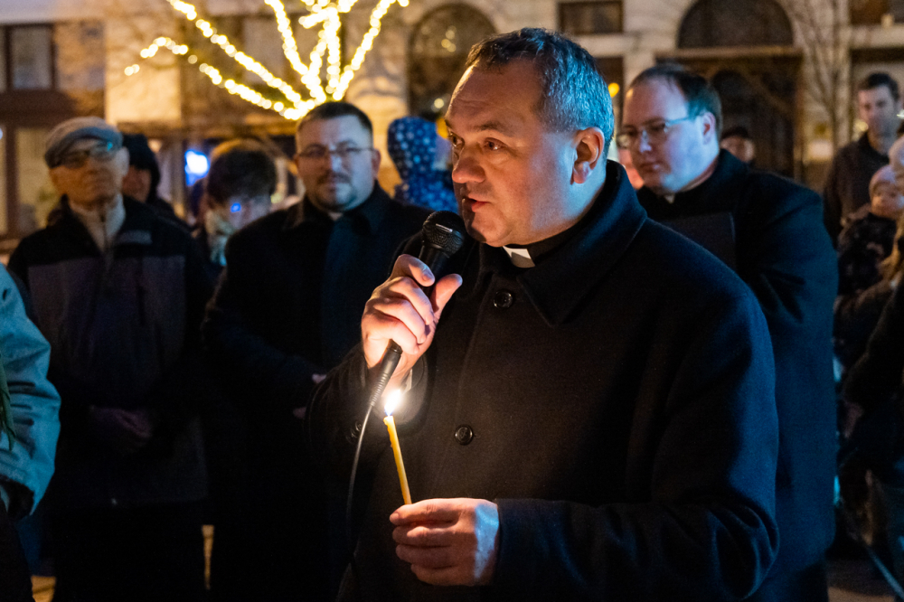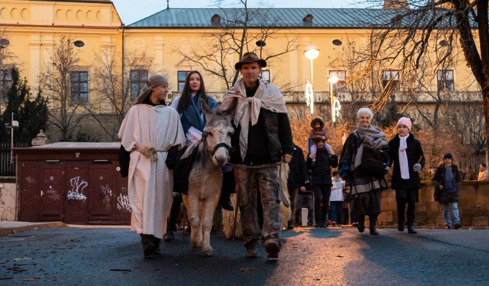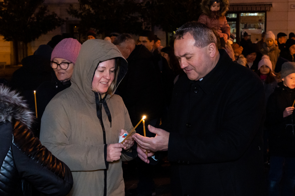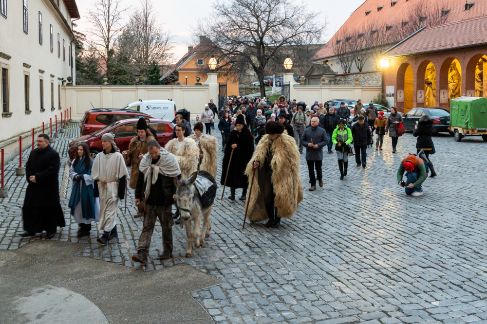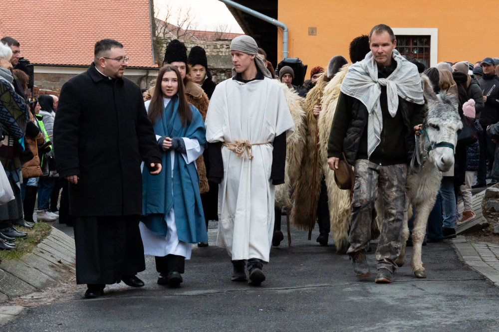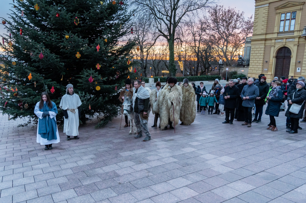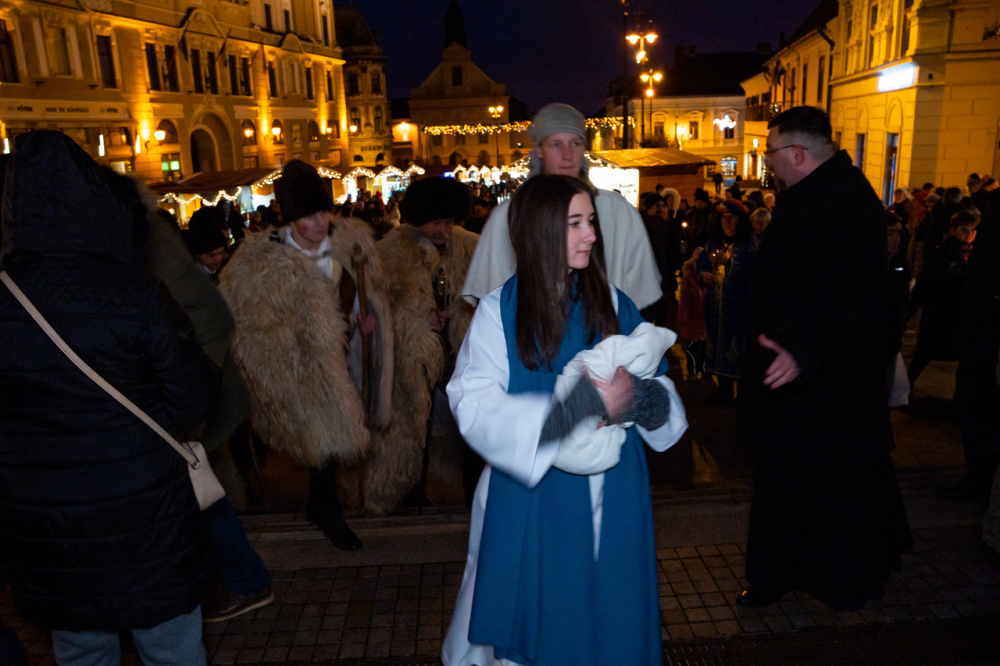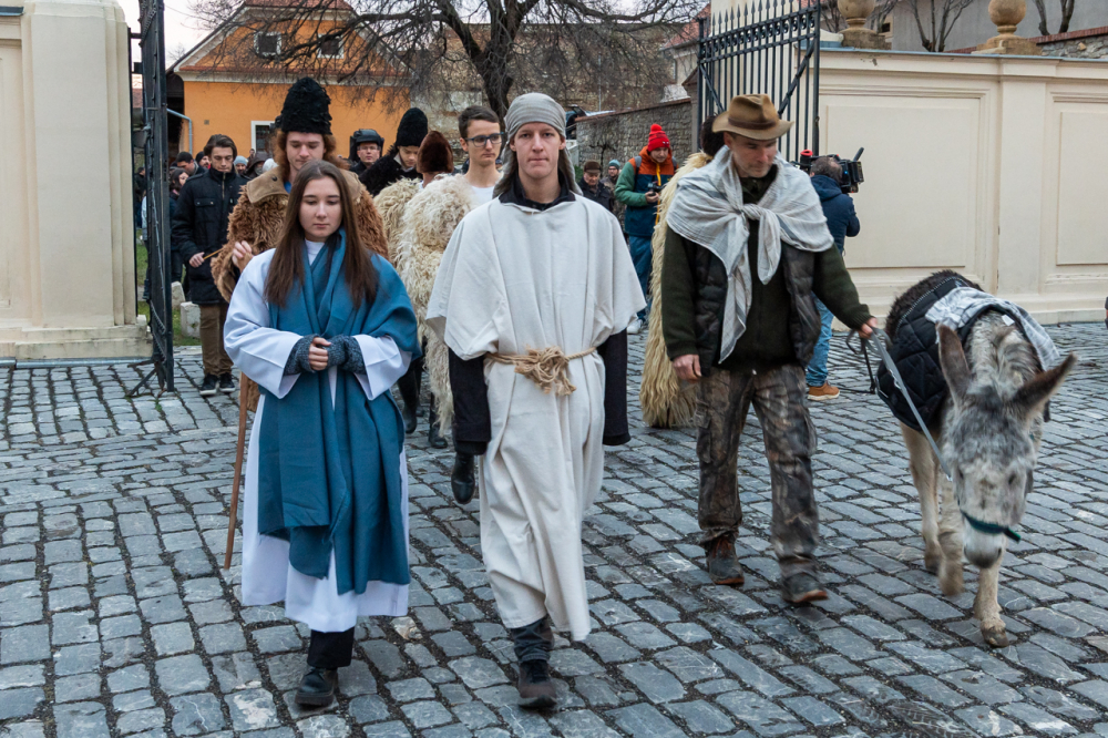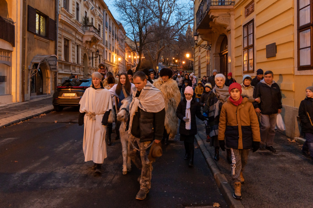 A júdeai Betlehemben szállást kereső Szent Család, Mária és József alakját megszemélyesítő fiatalok és az őket kísérő menet énekes-zenés ájtatosságban idézte fel a születés éjszakáján történteket december 23-án este Pécs belvárosában.