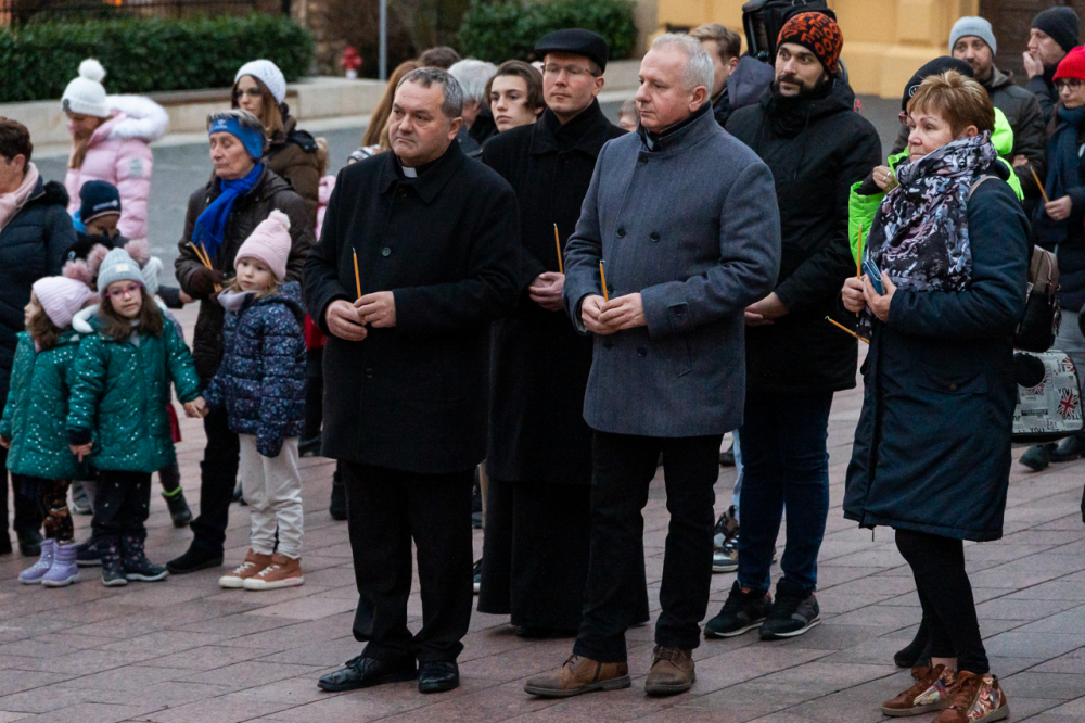 A programot a Széchenyi téren Felföldi László pécsi megyéspüspök gyertyagyújtása zárta Pécs város adventi koszorúján.