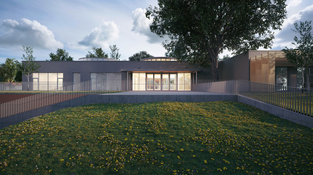 A földszinten a melegítőkonyha és a teakonyha, az iroda, a szociális terek, az orvosi szoba és az aula kap helyet, melyet a külső tereplépcsőn is elérhetünk majd, az épület főbejáratán keresztül.