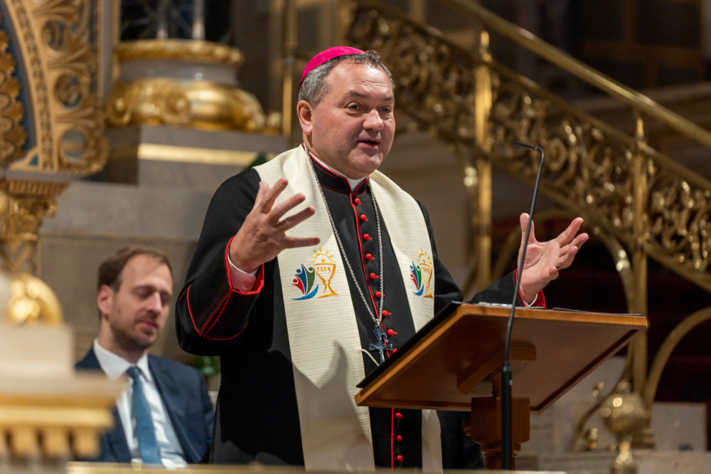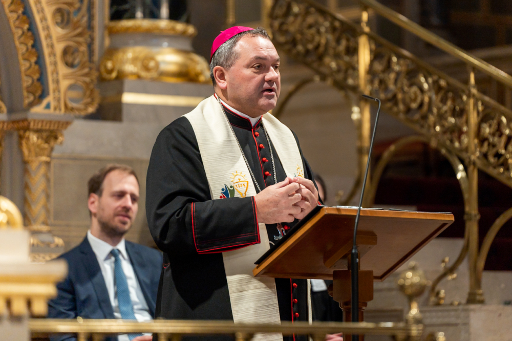 Felföldi László megyéspüspök prédikációjában az ember Istenhez és embertársához fűződő kapcsolatáról elmélkedett. A főpásztor hangsúlyozta, egy család tagjainak egymással való kapcsolata attól függ, hogy meghallják-e egymás hangját, vagyis meghallgatják-e a másikat. Ennek hiányában a kapcsolatuk krízisbe kerül. Ezért meg kell tanulnunk és meg kell tanítani egymást arra, hogy kell a másikat meghallani és ráfigyelve meghallgatni, megkülönböztetve a világ zaját, saját hangunkat, a másik ember hangját és az Isten hangját. Ehhez figyelem, jelenlét és csend szükséges.