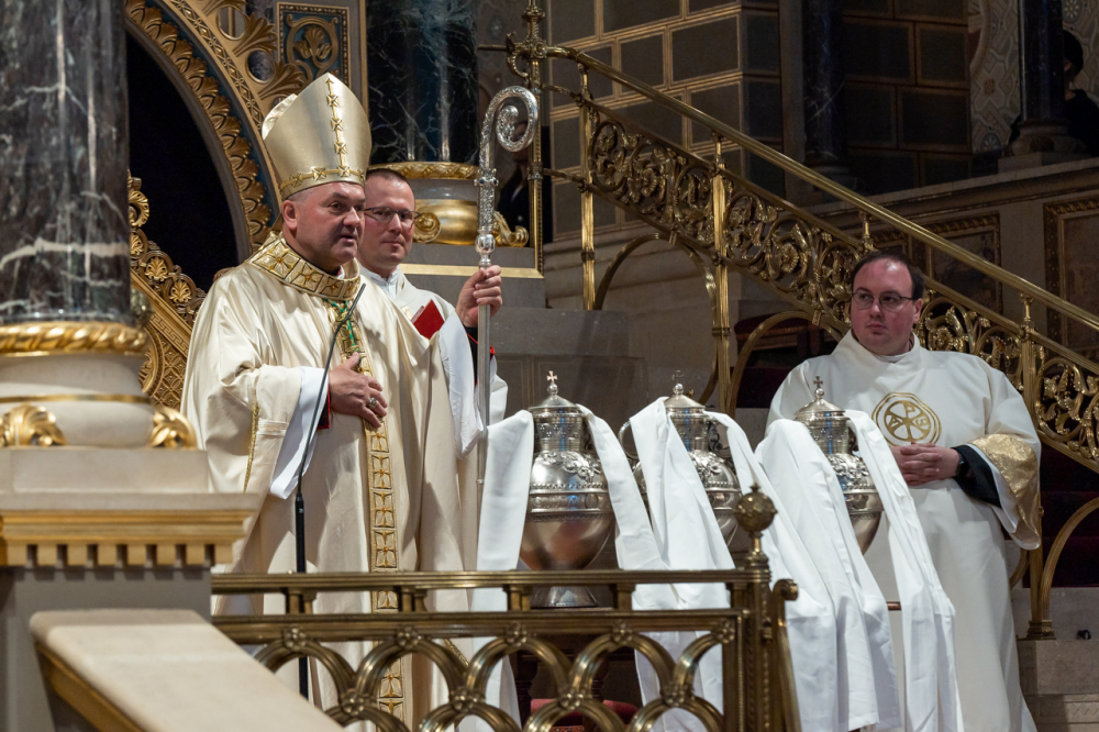 A keresztelendők olaja és a krizma az élő Egyház titkát üzeni és adja a kezünkbe. A családok és a fiatalok az Egyház éltető ereje, jövője. Rajtunk múlik, milyen fiatalokat, leendő családokat hagyunk a jövő Egyházának. Mert az Egyház él és az Egyház fiatal. Magában hordozza a világ jövőjét és így megmutatja mindannyiunknak a jövő felé vezető utat, ezért külön örülök, hogy itt vannak a fiatalok, akik különös erőt és hívást éreznek az Egyház szolgálatára, hiszen ők fogják a jövő Egyházát erősíteni és gazdagítani.
