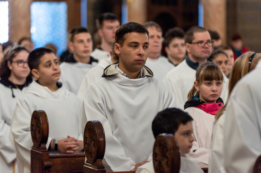 Jézus titeket különleges módon megszólított és ti örömmel válaszoltatok az Úr hívására, ezért vagytok ma itt. Nektek természetes az oltár, a liturgia, a keresztény közösség szolgálata. Azt kérem, hogy belső erővel, szívvel figyeljetek arra, hogy akár a liturgia, akár a hétköznapok szolgálatában vagy a személyes imádságokban hogyan szólít meg Jézus? Mit mond nektek?