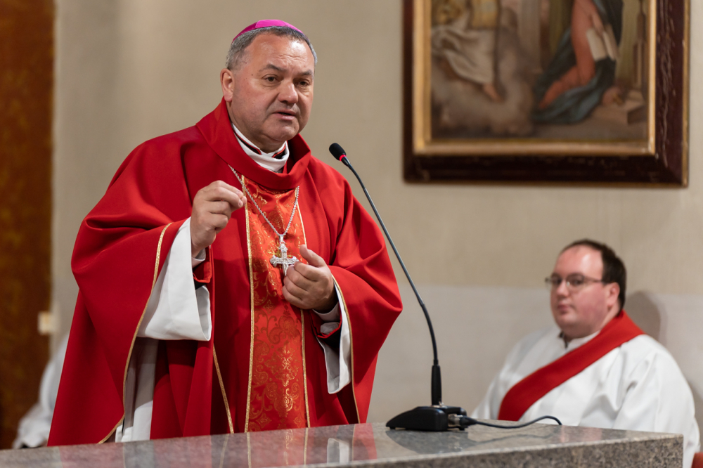 A család, a szülők legnagyobb feladata, hogy megtanítsák a gyermekeket szeretni és méltósággal szenvedni. Ezen múlik az életünk, a családi, emberi kapcsolataink. Aki nem tud méltósággal szenvedni, amellett pokol az élet, mert mindig mást fog tönkretenni a szenvedésével. De aki méltósággal elviseli a szenvedést, az tud szeretni is. Nem az a kérdés, hogy van-e a családunkban keresztünk és szenvedésünk, mert az mindenütt van, bőséggel, van, ahol látszik, van, ahol nem látszik – mutatott rá beszédében a püspök.