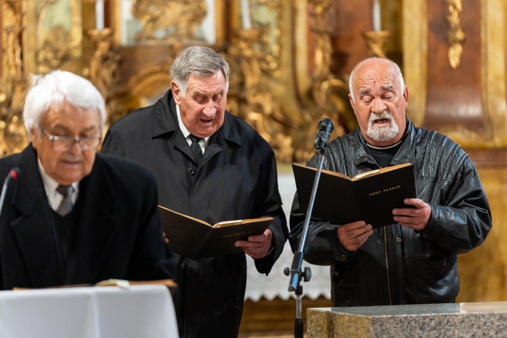 Majd a szertartásban elhangzott a passió, Jézus Krisztus szenvedéstörténete Szent János evangélista tanúsága szerint az egyházközség híveinek előadásában.