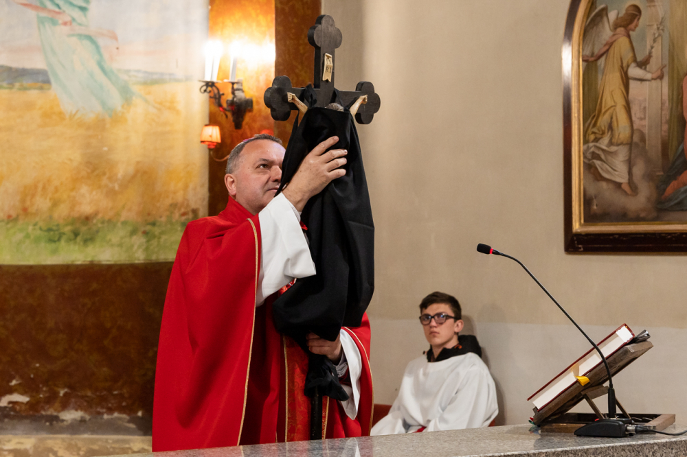 Az egyetemes könyörgések után a liturgia a kereszthódolat szertartásával folytatódott, melyhez kapcsolódva a főpásztor életünk keresztjéhez adott iránymutatást a jelenlevőknek. Elmondta, életünk, életszakaszaink keresztjének viselésében a legfontosabb, hogy egyensúlyba kerüljünk alatta, mert amíg nincs egyensúlyban a kereszt, addig nem lehet vele elindulni. A keresztet nem lehet letenni. Aki leteszi keresztjét, óriási terheket, szenvedést okoz másoknak és nem láttam még olyat, hogy a nehéz keresztet letéve, könnyebbet vett volna fel valaki – fogalmazott a főpásztor.