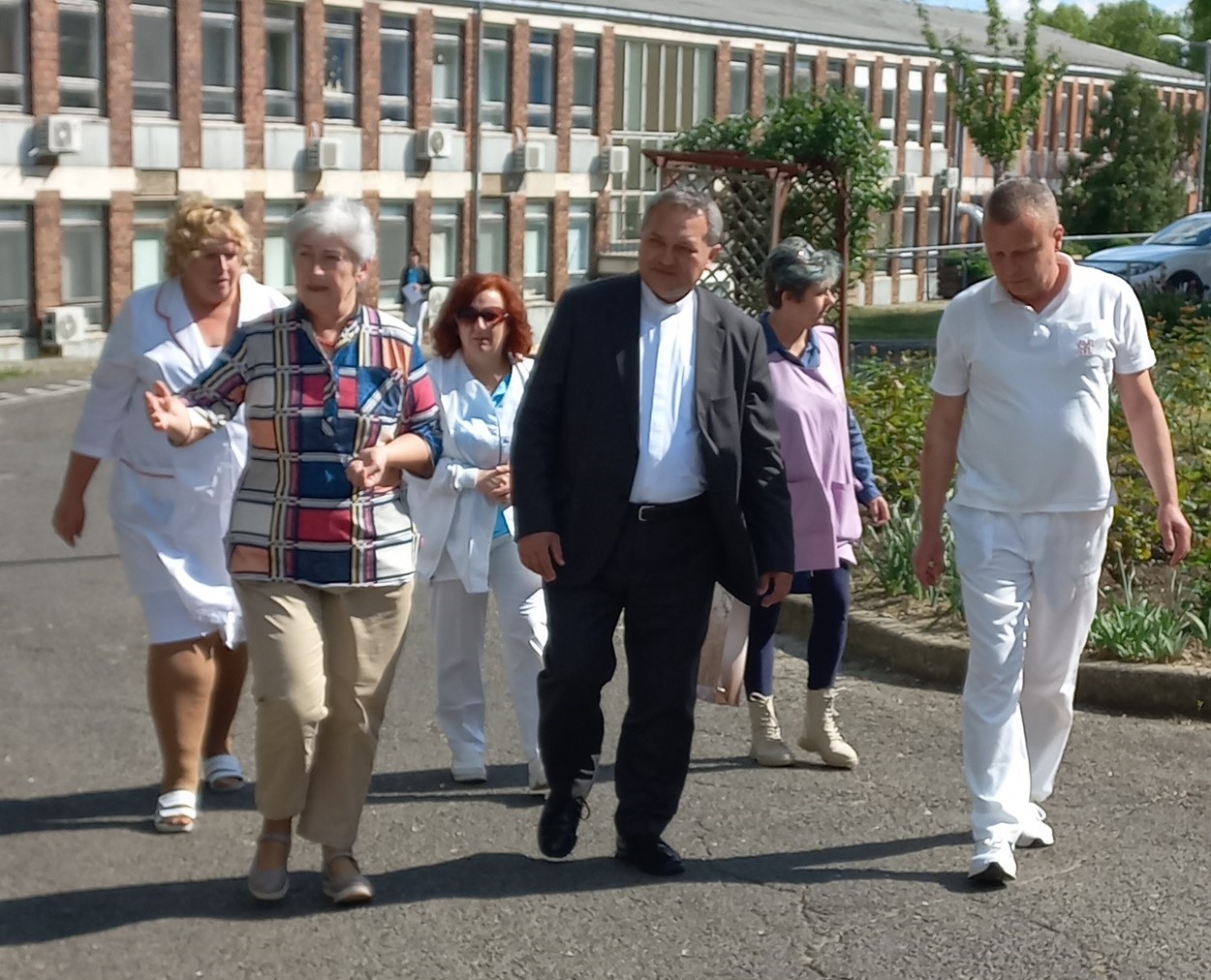 A püspök úr minden formaságot mellőzve, kíséret nélkül érkezett a kórházba, ahol dr. Vidáné dr. Szücs Mária orvos igazgató, Pappné Kozma Krisztina ápolási igazgató, Kósáné László Anikó ápolásiigazgató-helyettes, dr. Almási István orvosigazgató-helyettes, valamint Vég Beáta kórházlelkészségi koordinátor fogadták és kalauzolták végig az intézményen.