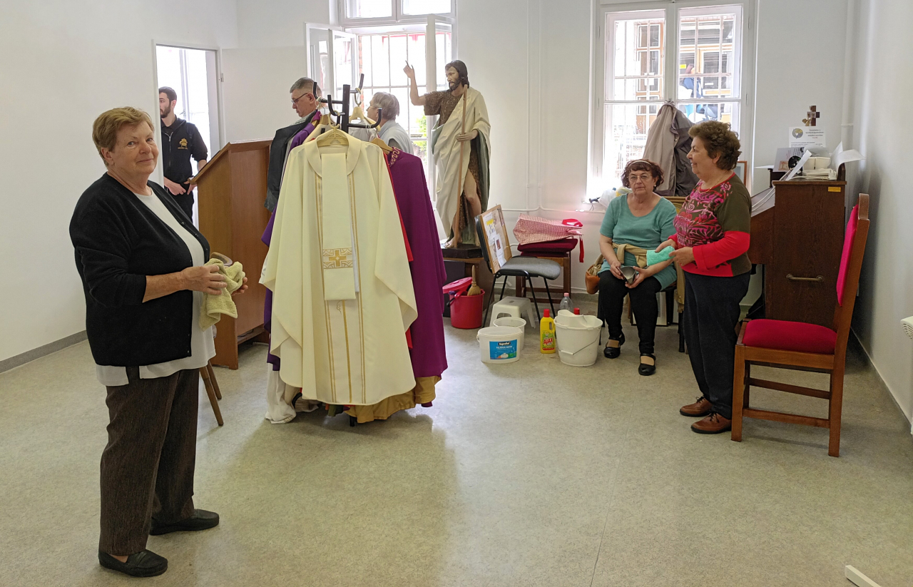 A költöztetésben és a takarítási munkálatokban az egyetemi dolgozók, a kórházlelkészség önkéntesei, valamint Kövesi Ferenc, a kórházi betegek lelkipásztori ellátását végző kórházlelkész is részt vett. Az új sekrestye bútorai már a helyükre kerültek, az oltár még átalakítás alatt.