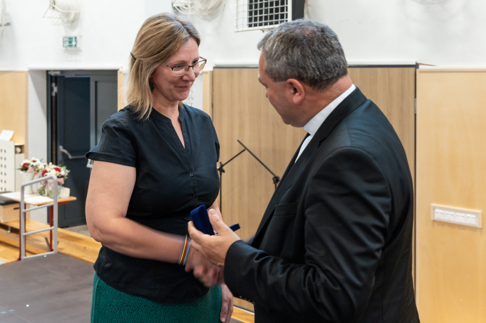 Felhívta a figyelmet életünk derűje megtalálásának fontosságára. Mint fogalmazott, a pihenés segít megtalálni a teremtett és sokszor zajos világ szépségében a gondoskodó teremtő Atyát és önmagunkat, hogy hivatásunkban képesek legyünk látni: jól látni egymást és a ránk bízott gyermekeket. Végezetül a főpásztor a Jóisten áldását kérte a pedagógusok szolgálatára, majd az ünnep díjátadóval folytatódott.
