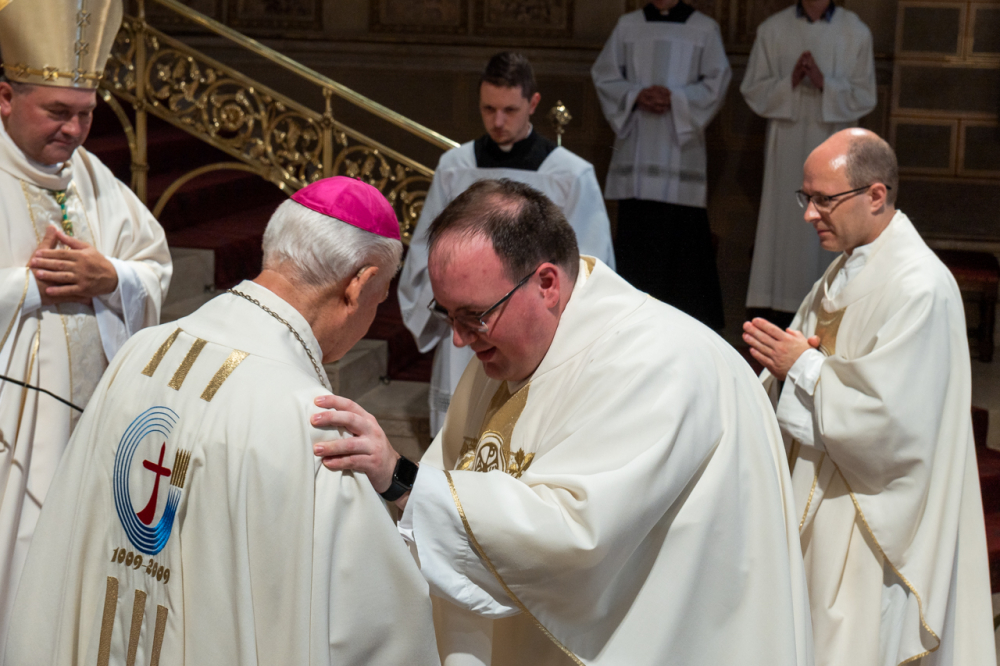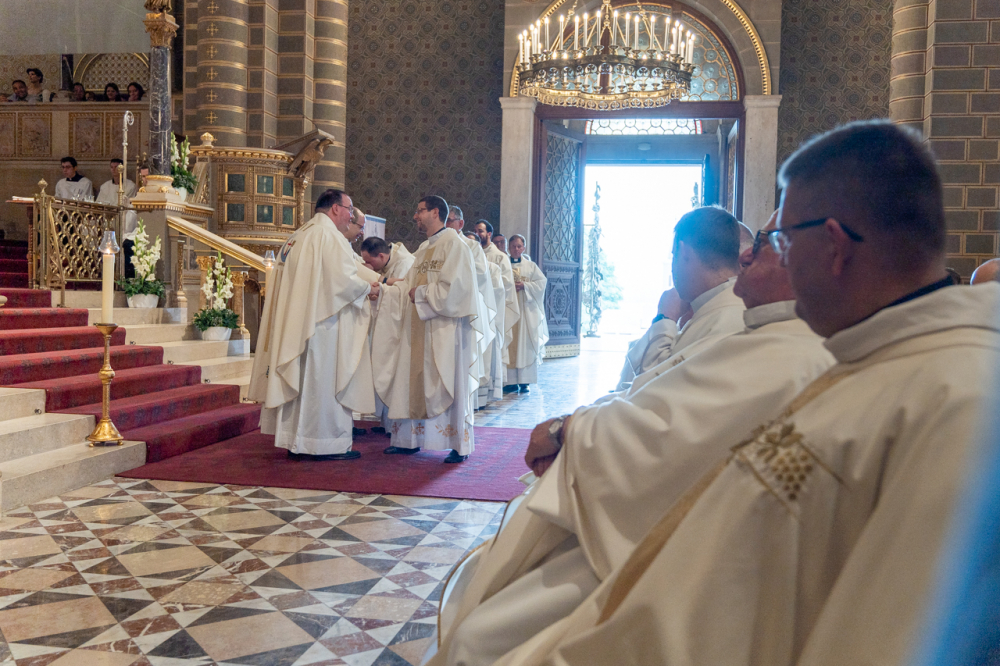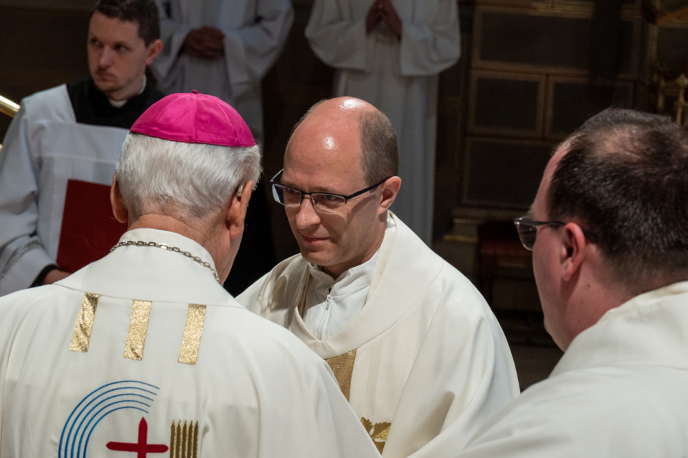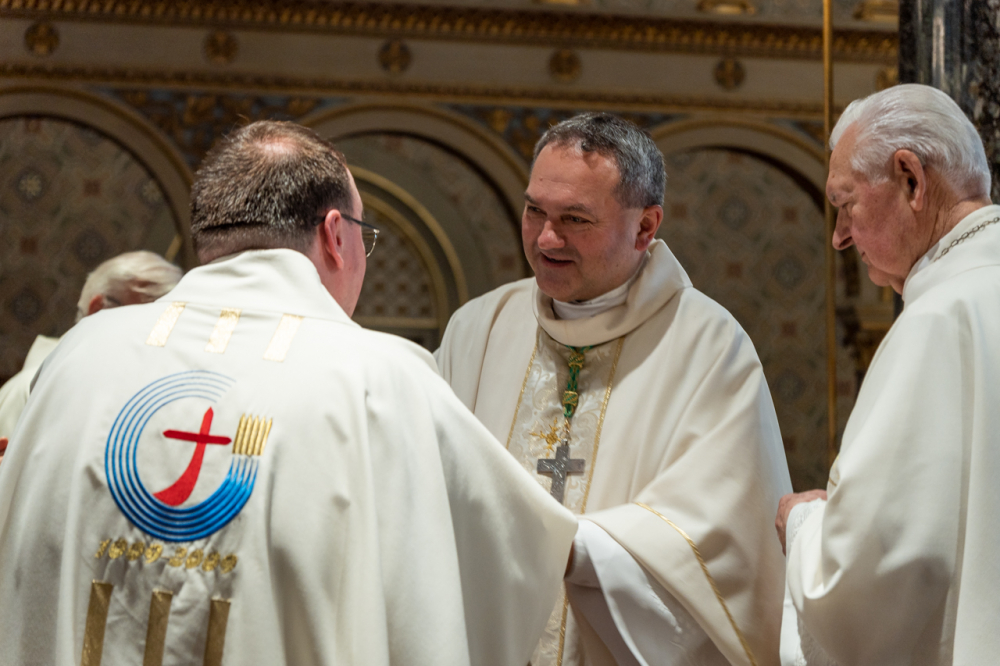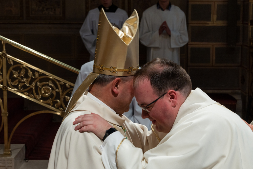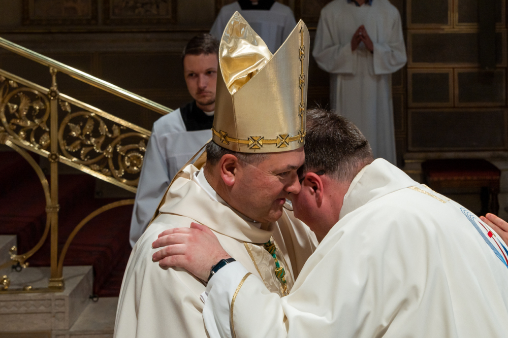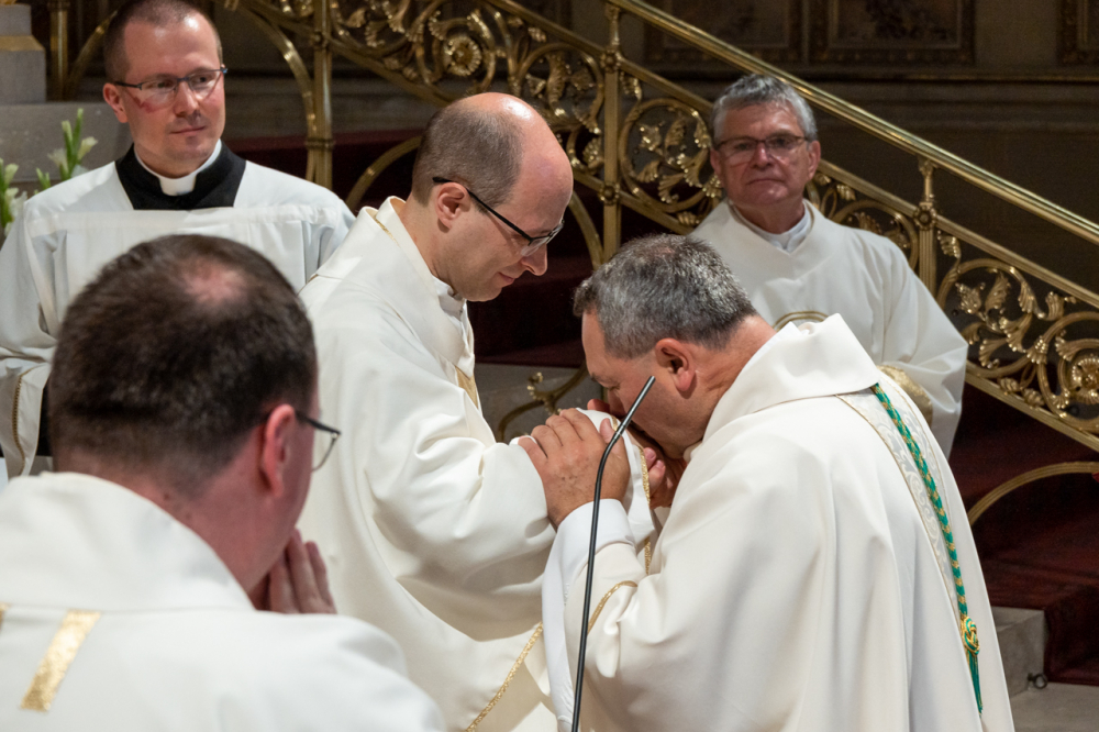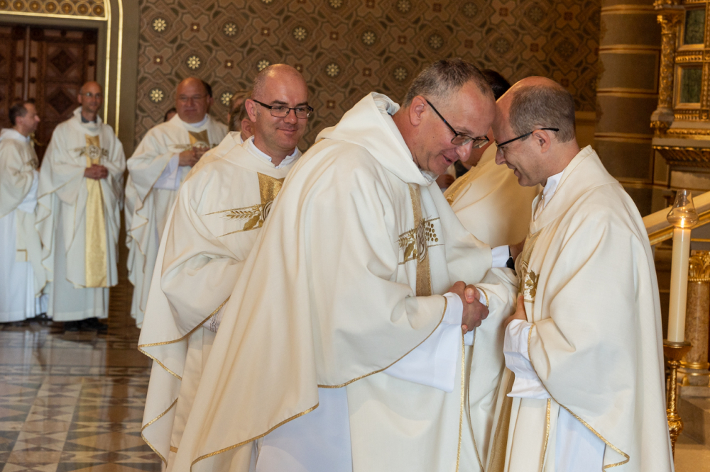 Ezután az új papok békecsókkal köszöntötték az őket felszentelő főpásztort, majd valamennyi jelen lévő pap is békecsókkal köszöntötte az új paptársakat.
