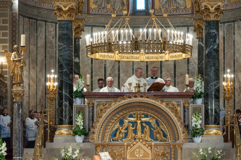 A Pécsi Egyházmegye két újmisés lelkipásztora Mihovics Szebasztián és Miklovits Attila az első szentmiséjük végén a főpásztorukkal közösen adtak áldást a jelenlevőkre.