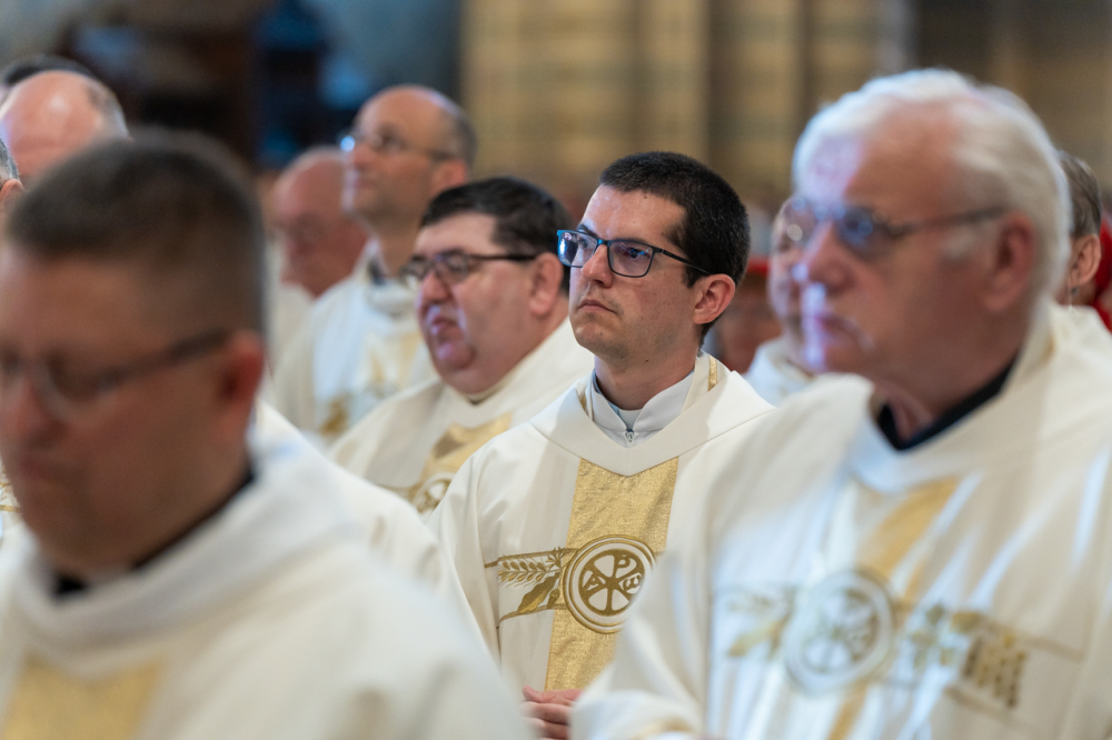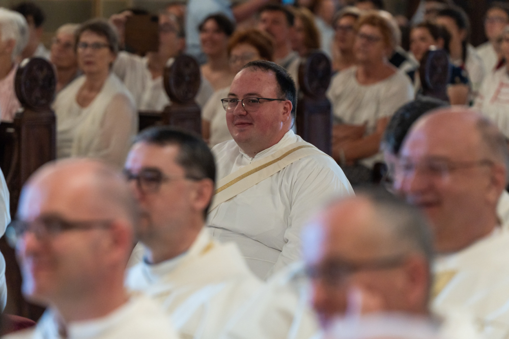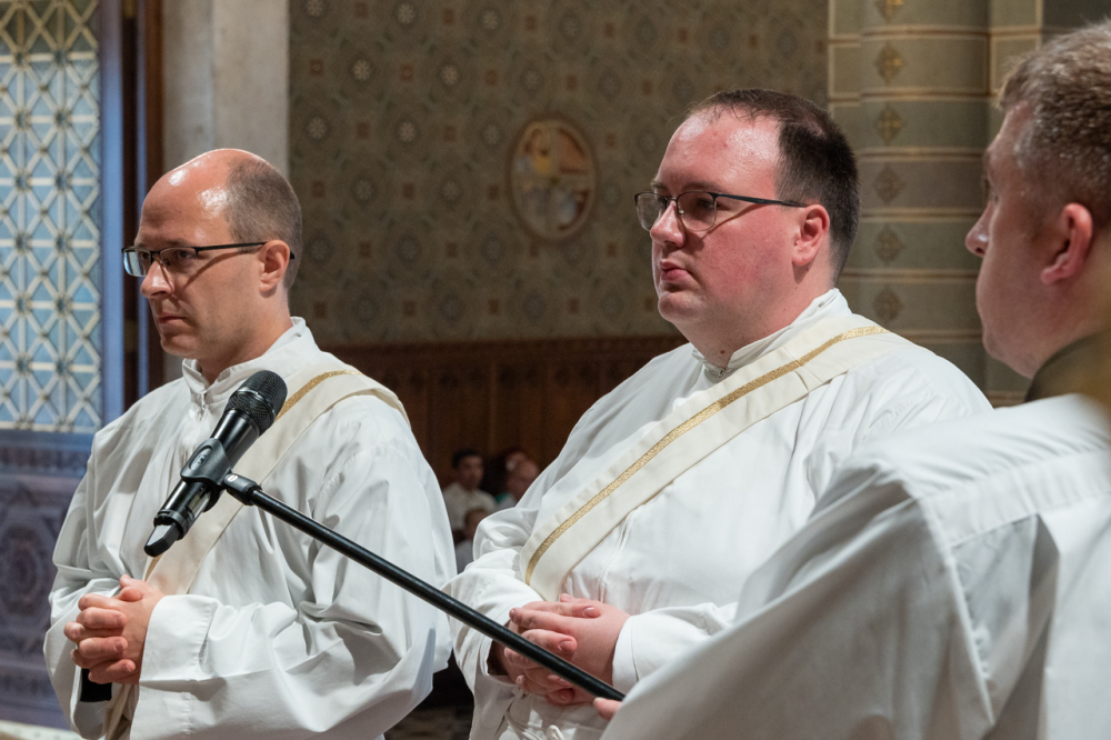 A szentmise kezdete előtt Máger Róbert püspöki irodaigazgató, a székesegyház plébánosa röviden ismertette az egyházi rend szentségének második fokozatában részesült szentelendők életútját. Úgy fogalmazott, hogy Isten különleges kegyelmi időt engedett nekünk, hogy öt év elteltével újra papszentelést ünnepelhetünk a Pécsi Egyházmegye anyatemplomában.