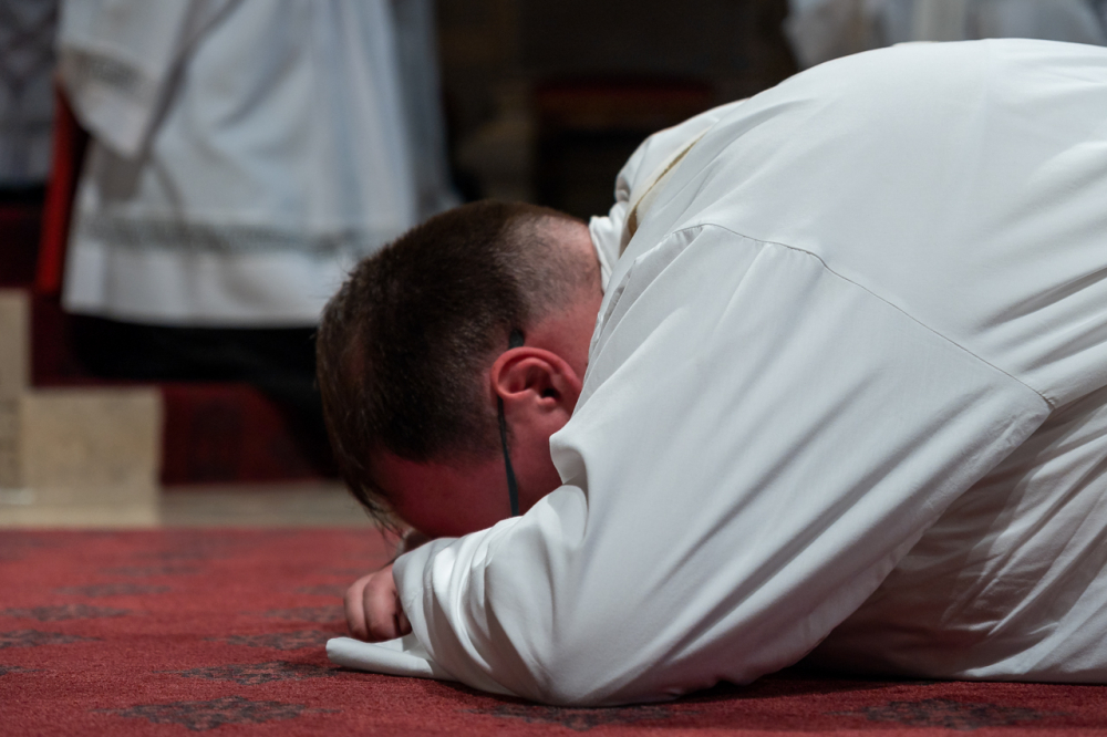 Ezután a jelenlévők elimádkozták a Mindenszentek litániáját, miközben a szentelendők a földre borulva fejezték ki Istennek való önátadásukat.