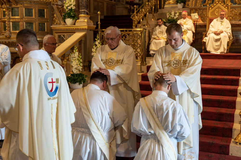 Felföldi László pécsi megyéspüspök áldozópappá szentelte Mihovics Szebasztián és Miklovits Attila diakónusokat június 22-én a pécsi Szent Péter- és Szent Pál-székesegyházban. Az ünnepi szentmisén, melyen jelen volt Mayer Mihály nyugalmazott püspök is, a Pécsi Egyházmegye papsága koncelebrált.