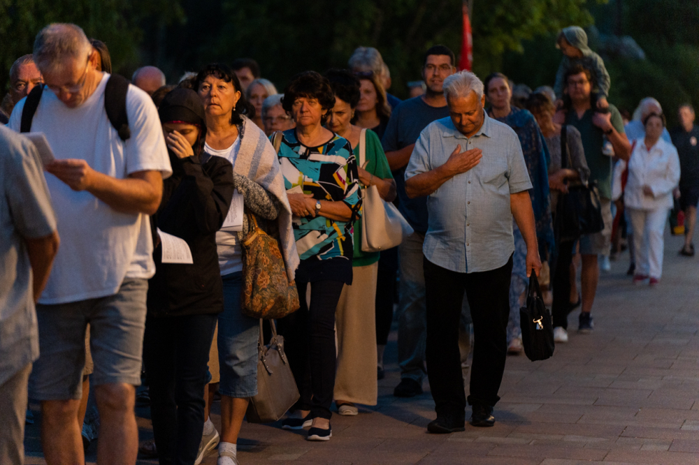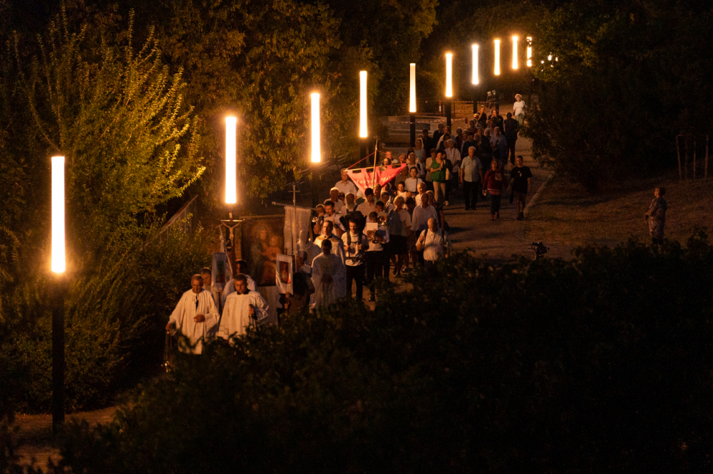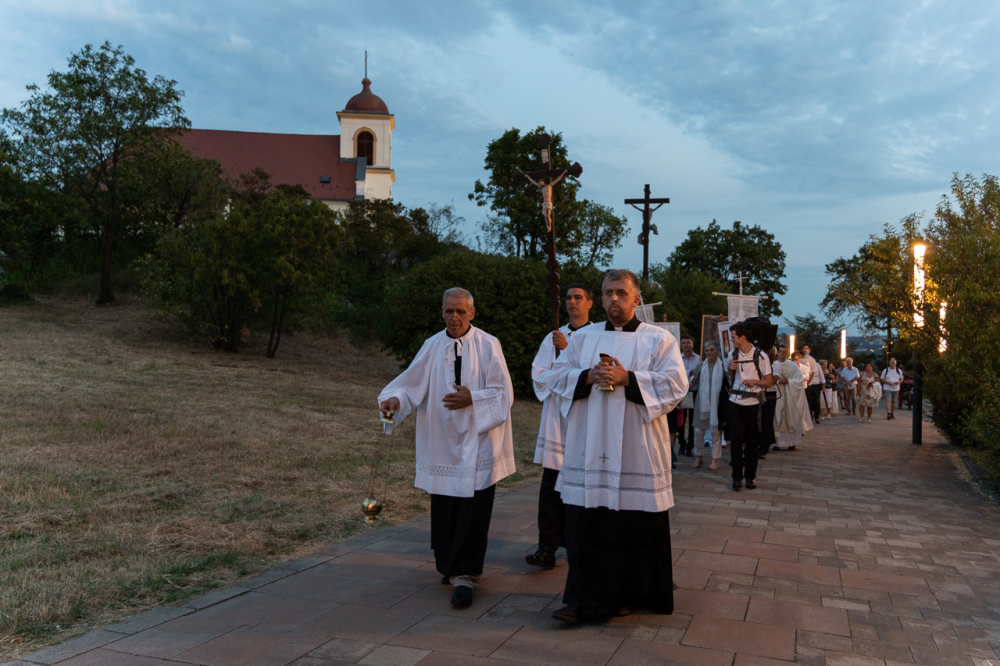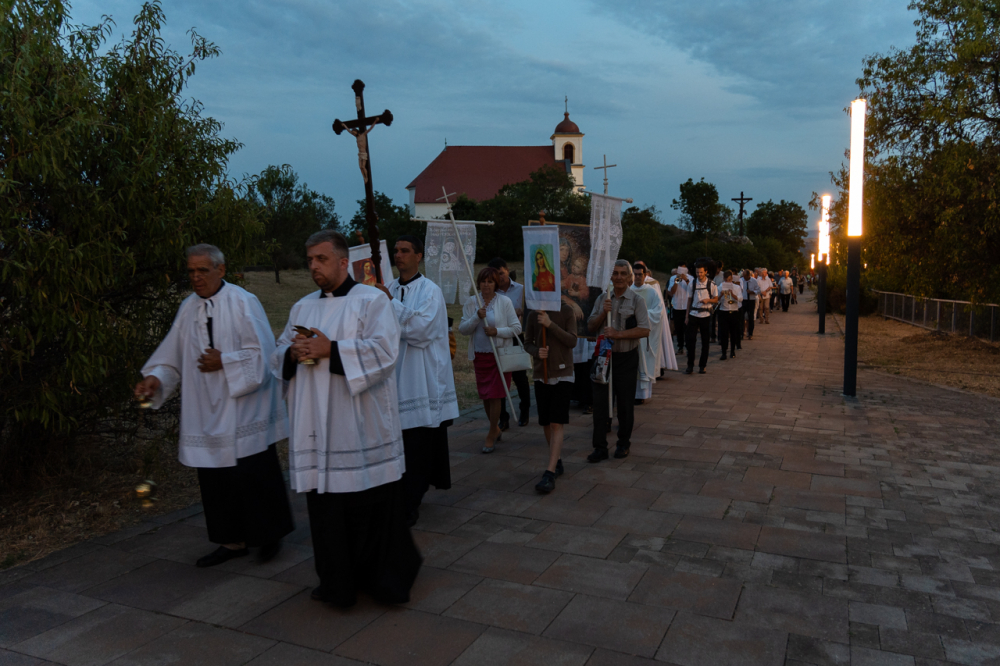 A szentmise után a hívek, a zarándokok és a papok a Boldogságos Szűzanya tiszteletére Egyházunkért, a Pécsi Egyházmegyéért, a templom közösségéért és Pécs városáért imádkozva körmenetetben kísérték a Havas Boldogasszony-kegykép másolatát a templom melletti Havi-hegyi sétányon.