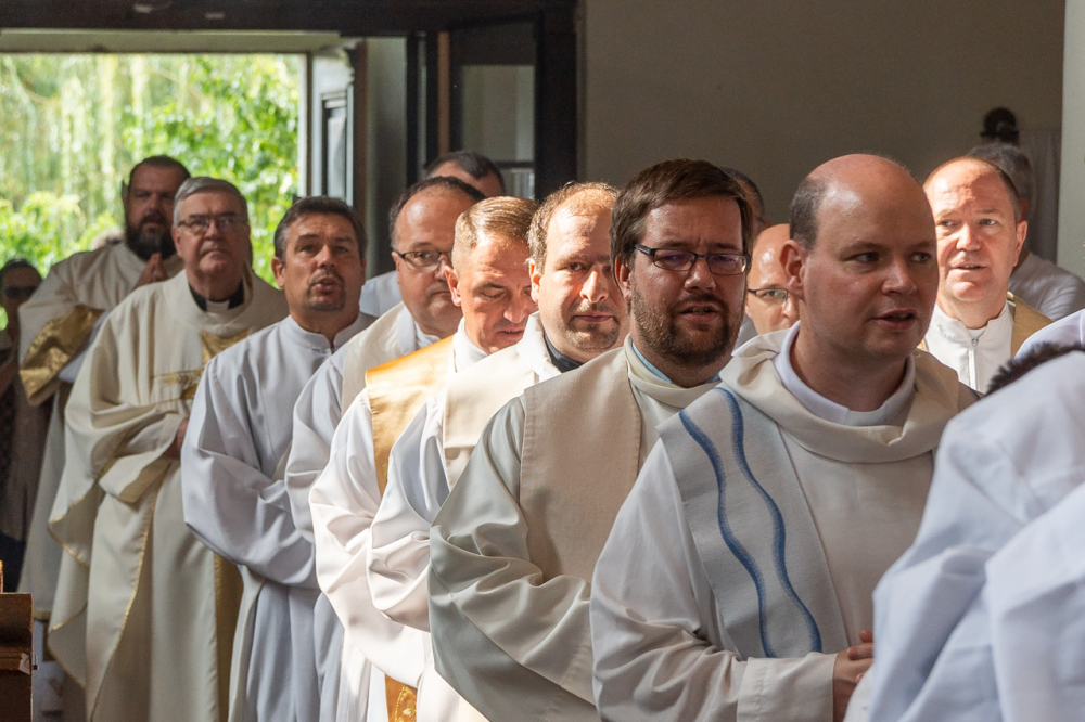 A főpásztor, a jelenlévő papok, diakónusok békecsókkal köszöntötték az újdonsült diakónust, aki a szentmise áldozati részénél már a püspök oldalán segédkezett az oltárszolgálatban.