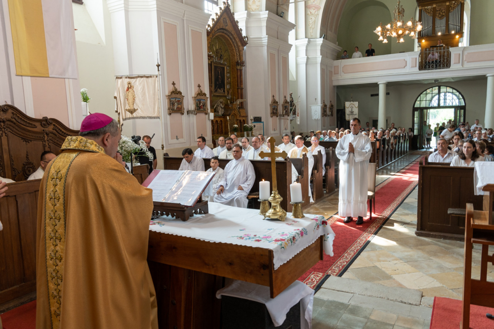A szentelési liturgián Felföldi László megyéspüspök köszöntötte a szentelendőt és családját, az egyházmegye papjait és diakónusait, a cserkészeket, a vendégeket és a híveket, a padokban helyet foglaló református lelkész házaspárt az Egyház különleges ünnepén, mely egy találkozás azokkal a személyekkel, akik körében a diakónus élni és szolgálni fog az Istentől kapott hivatás útján.