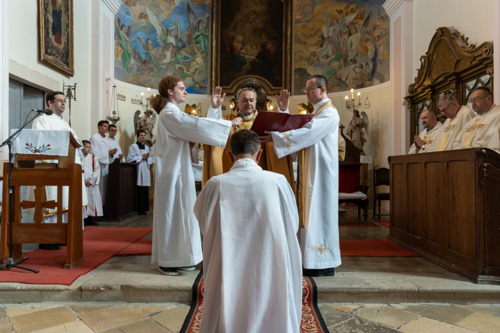 Ezt követte a beöltözés szertartása, valamint az evangéliumos könyv, mint az igehirdetés szimbólumának átadása: „Vedd Krisztus evangéliumát, amelynek hirdetője lettél! Ügyelj arra, hogy amit olvasol, hidd; amit hiszel, tanítsd, és amit tanítasz, kövesd is” – mondta az immár állandó diakónusi szolgáltra felszenteltnek a püspök.
