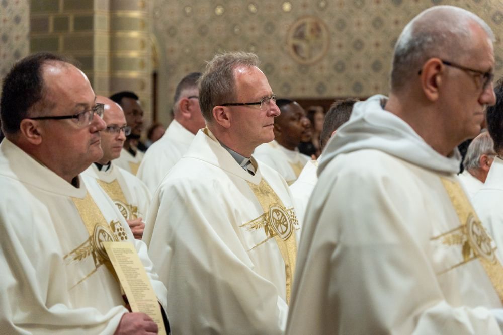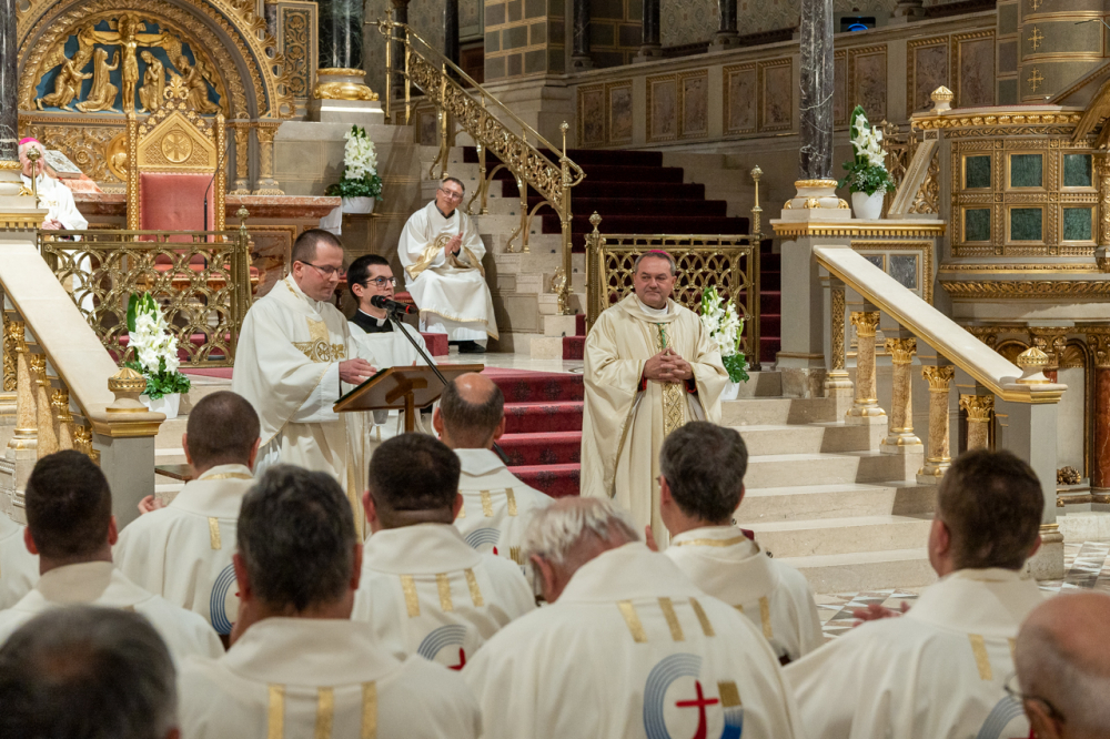 A liturgia zárásában a főpásztor köszönetet mondott az atyáknak a közös ünneplésért, majd kifejezte háláját a megbecsülésükért és figyelmükért, mellyel munkatársaik életét kísérik és értékelik áldozatos szolgálatukat.