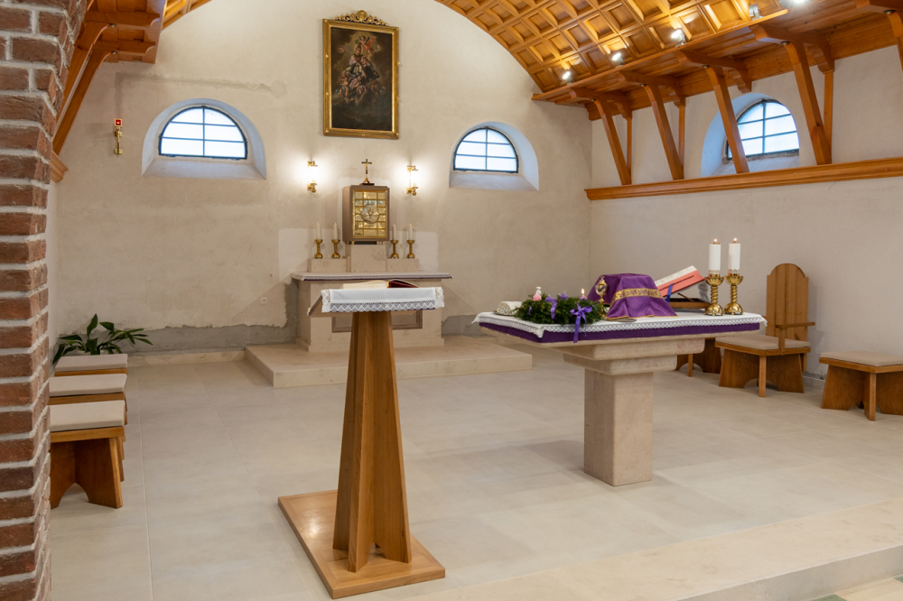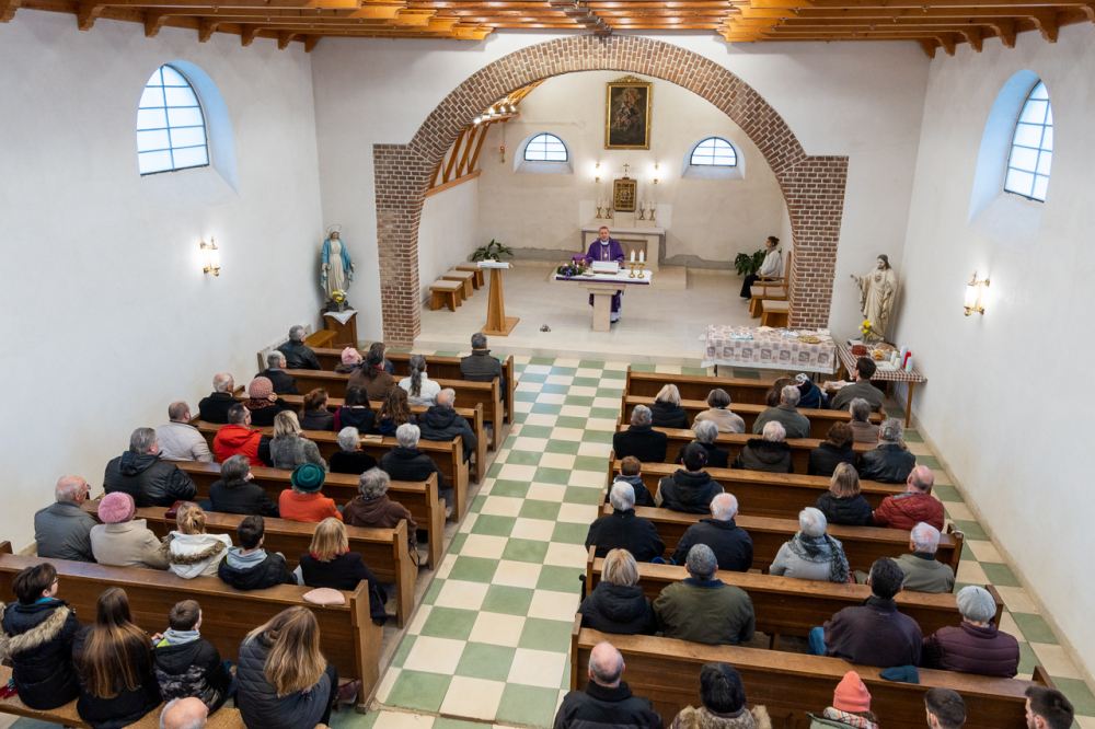1938. május 16-án felszentelték a ma is látható kápolnát, melynek falában megőrizték elődje 1773-ból származó német nyelvű emlékkövét.