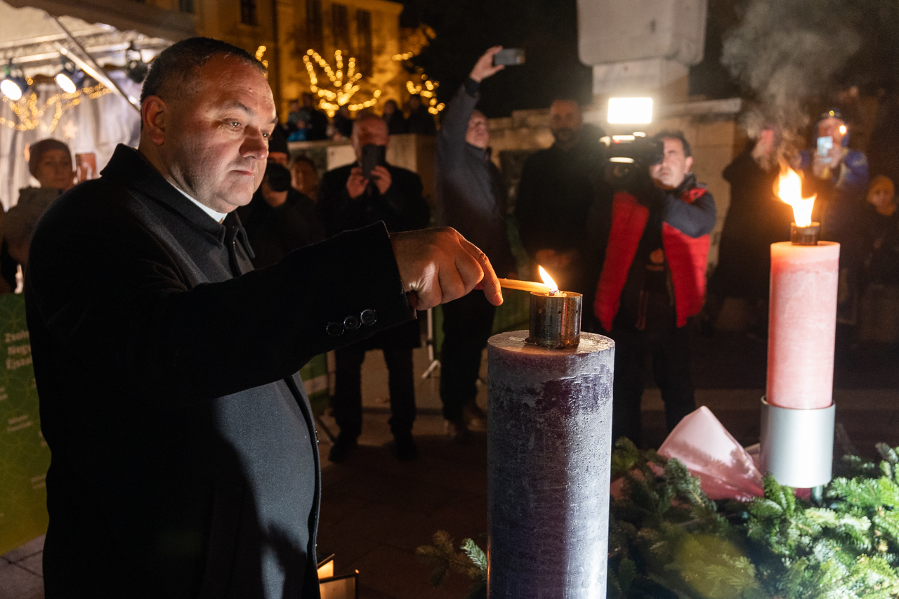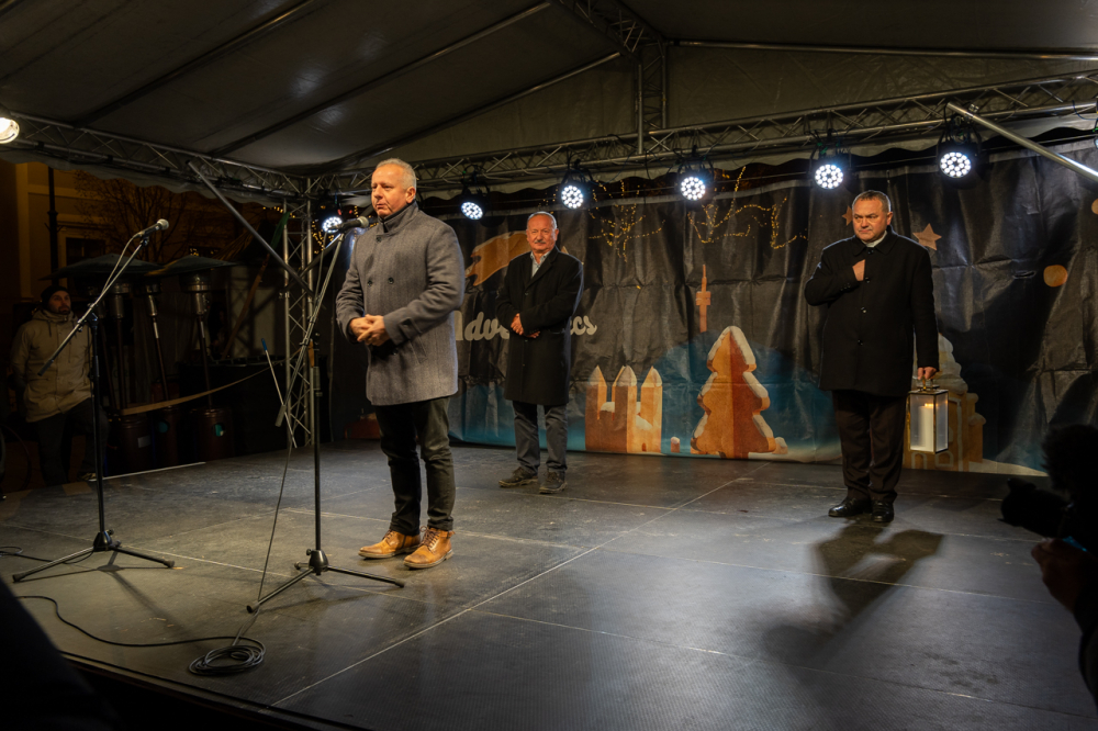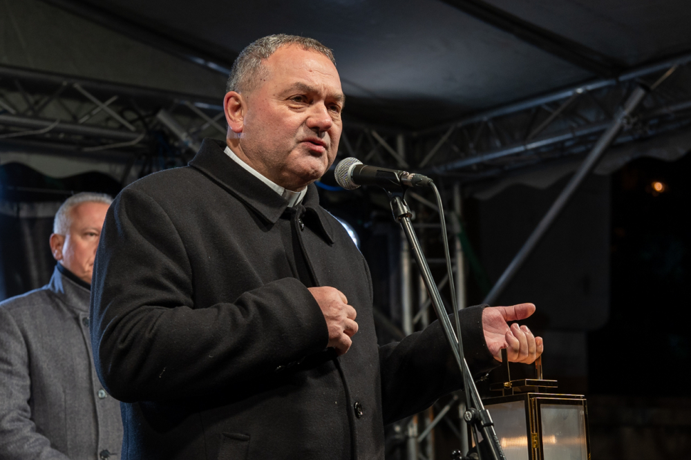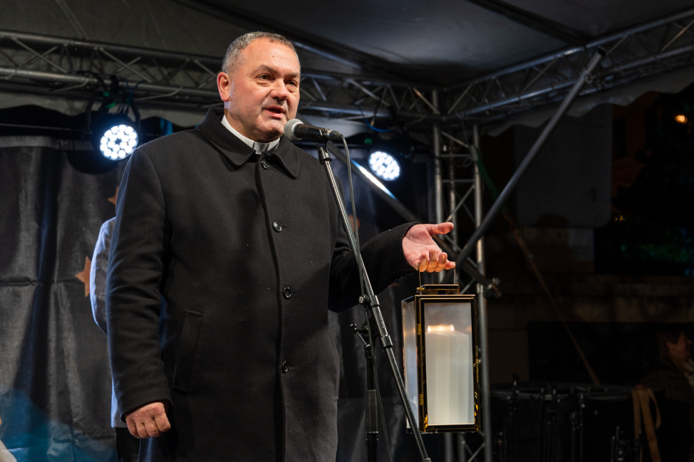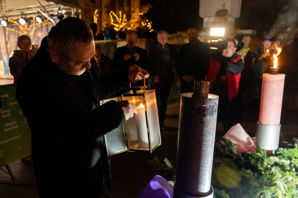 A megyéspüspök beszédében elmondta, a betlehemi láng gyertyáról gyertyára adva érkezett ide, hogy a fénye felragyogjon a mi adventi koszorúnkon is. A koszorú jelkép, melynek gyertyái fényében meglátjuk a sorsunkat a múlt valóságában, a jelen kihívásában és a jövő reményén. A fénynek növekednie kell, karácsonykor az isteni szeretet fénye beragyogja a szíveket. Ahogy a Szent Család szállást keresett Betlehemben, Isten ma ugyanúgy szállást keres az emberi szívekben, ahol nagy szükség van erre a fényre és világosságra – fogalmazott a főpásztor, aki krisztusi békével, örömmel és szeretettel megáldott karácsonyt kívánt a jelenlevőknek.