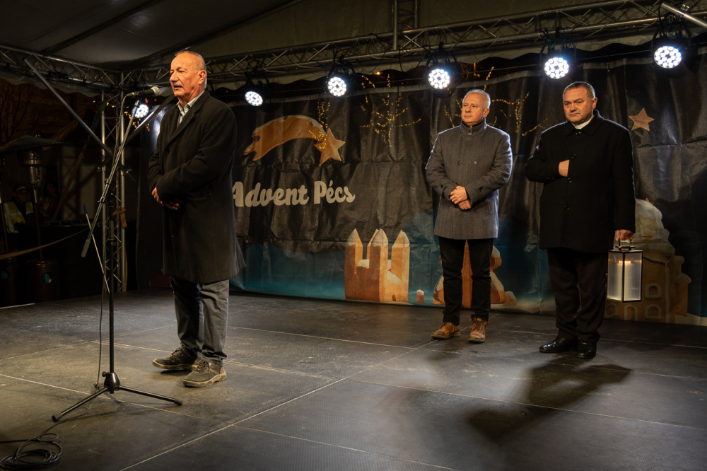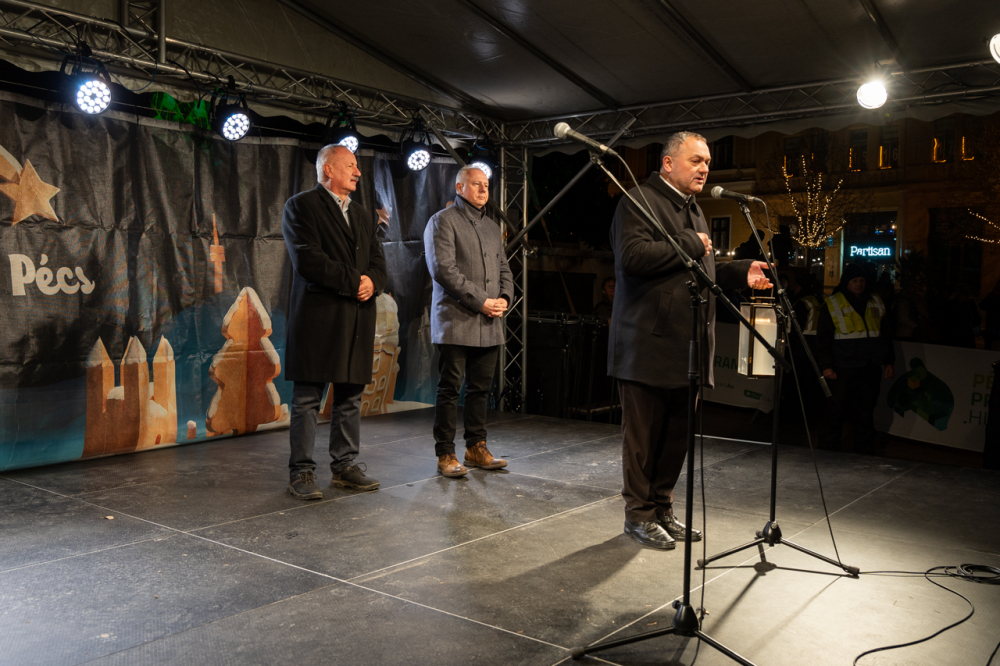 A zsúfolásig megtelt Széchenyi tér adventi forgatagában megtartott gyertyagyújtás előtt a főpásztorhoz csatlakozva rövid köszöntőt mondott Péterffy Attila polgármester és dr. Miseta Attila, a Pécsi Tudományegyetem rektora is.