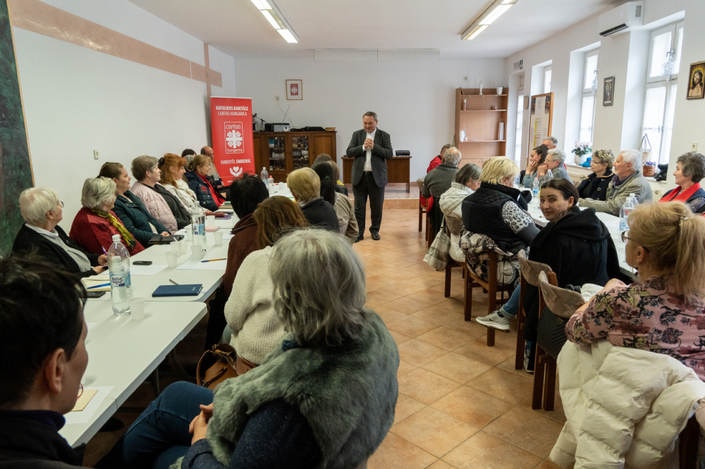 A Pécsi Egyházmegyei Karitász pécsi központjában megrendezett találkozó célja a közösségépítés mellett az aktuális segélyprogramokról történő szakmai iránymutatás volt. Elsőként Besenczi Zsolt pécsi karitászigazgató ismertette a Pécsi Egyházmegyei 39 helyszínén működő szeretetszolgálat 760 fő önkéntesével 2024-ben végzett munkájuk összesített eredményeit.