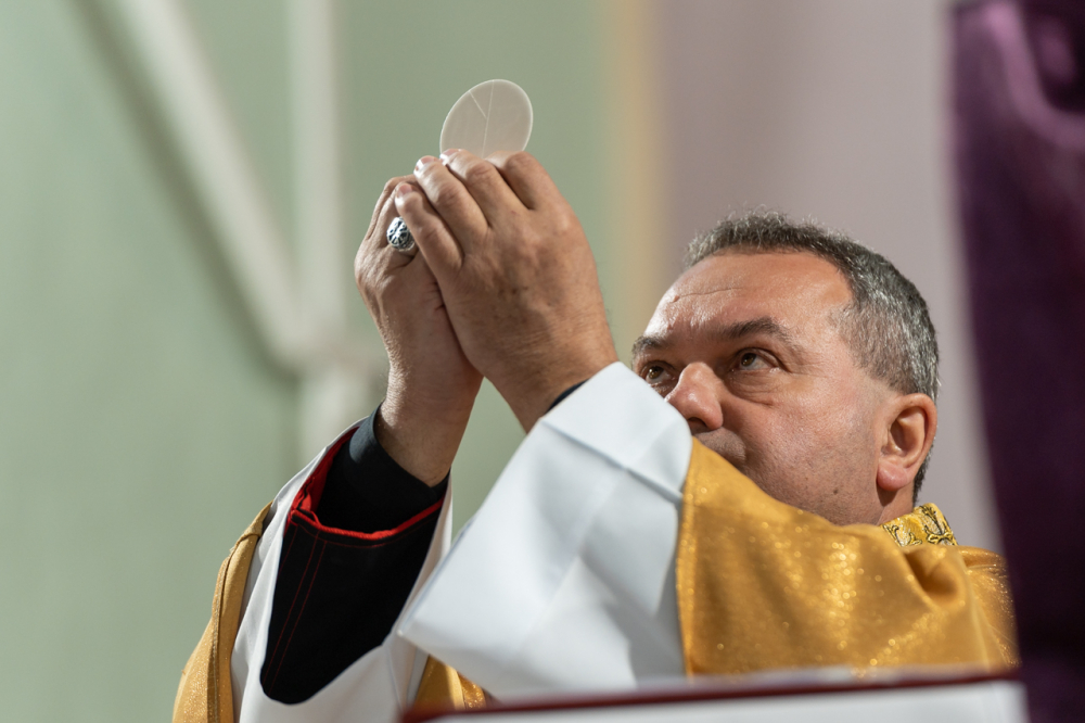 Sokak számára nehéz elhinni, hogy lesz a kicsiny ostyából a pap által elmondott átváltoztatás szavaira Krisztus valóságos teste – tette fel a kérdést a püspök. Jézus 3 éven át készítette, formálta az apostolokat erre az estére. Tanította őket, látták a csodáit, megtapasztalták, hogy amit Jézus mond, az úgy van. Amikor azt mondta a bénának, hogy járjon, az elkezdett járni, amikor vihar volt, Jézus szavára lecsendesedett, amikor mindössze néhány kenyerük volt, megsokasította azt és szétosztották a sokaság között. Az utolsó „vacsora közben Jézus kezébe vette a kenyeret, megáldotta, megtörte s odanyújtotta tanítványainak, ezekkel a szavakkal: „Vegyétek és egyétek, ez az én testem!” (Mt 26,26)