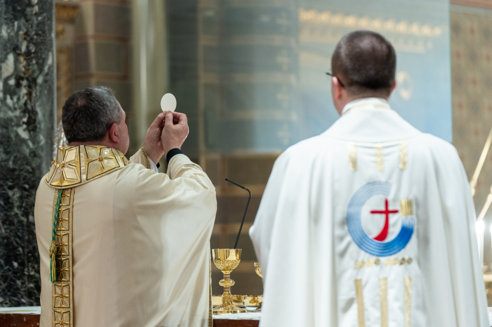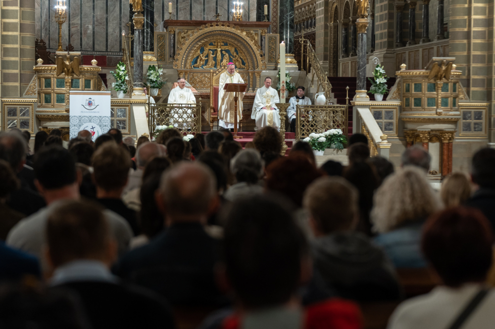 Hangsúlyozta, az istenkapcsolat közösség nélkül megélhetetlen, mert csak így, ebben születik meg és nyer értelmet a feltámadás titka. Ennek útja már elkezdődött, nem csak egy terv. A szentbeszédben elhangzott, hogy jelen vannak az Exodusban (lelkigyakorlat férfiaknak – a szerk.) részt vett férfiak, akik megélt küzdelmükben összekötötték hitüket és hosszú heteken keresztül próbára tették magukat. Ők már tudják, hogy ez az út egyedül járhatatlan, mert egyedül haladva könnyen visszalépnek, de ha együtt, kötelékben, tartásban élik meg, akkor sikerülni fog, A próbatételek gyümölcseiből pedig gazdagabb családi élet terem – fogalmazott a közösségben való lét egyik adományáról a főpásztor, aki egy másik közösségi élményre is felhívta a résztvevők figyelmét: