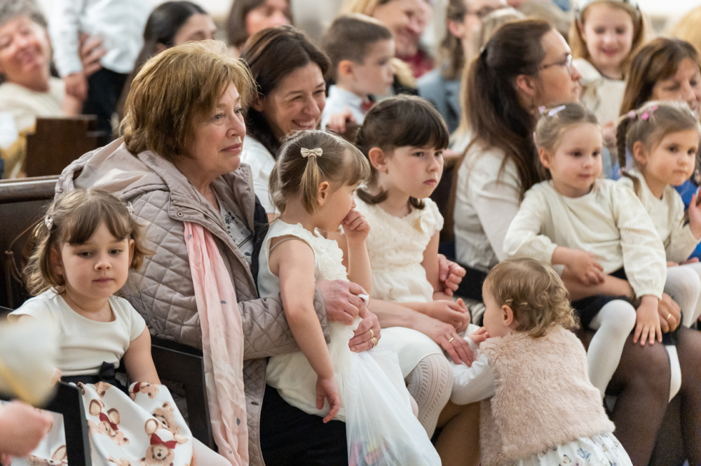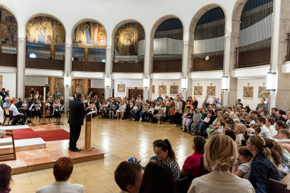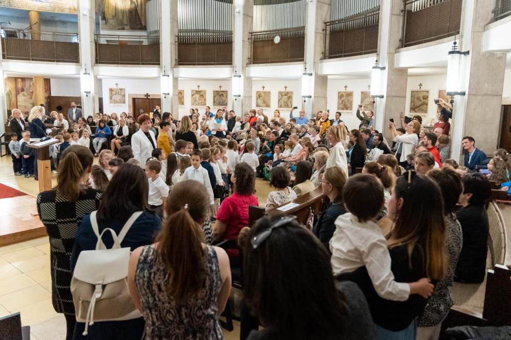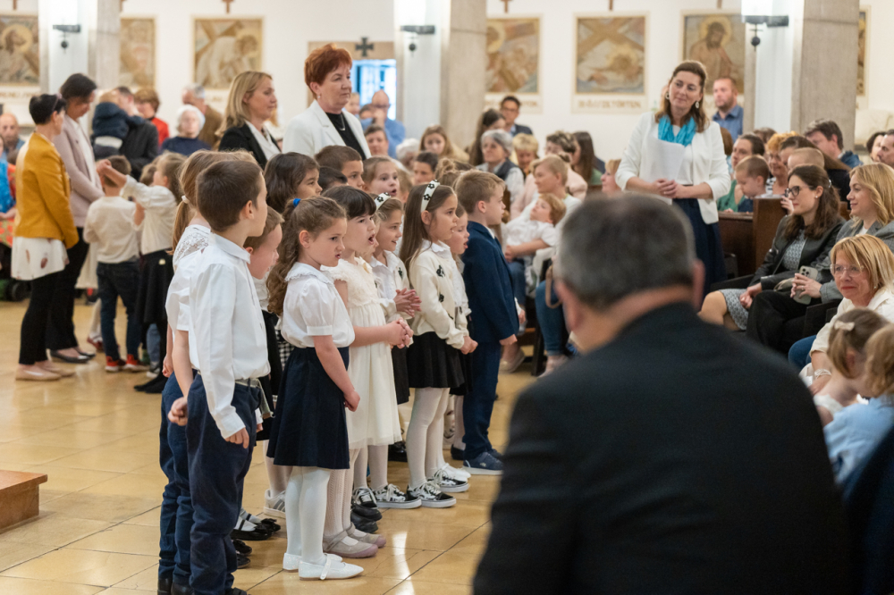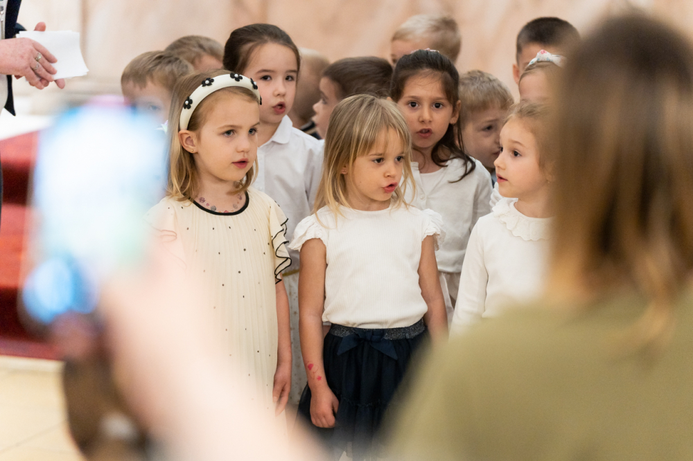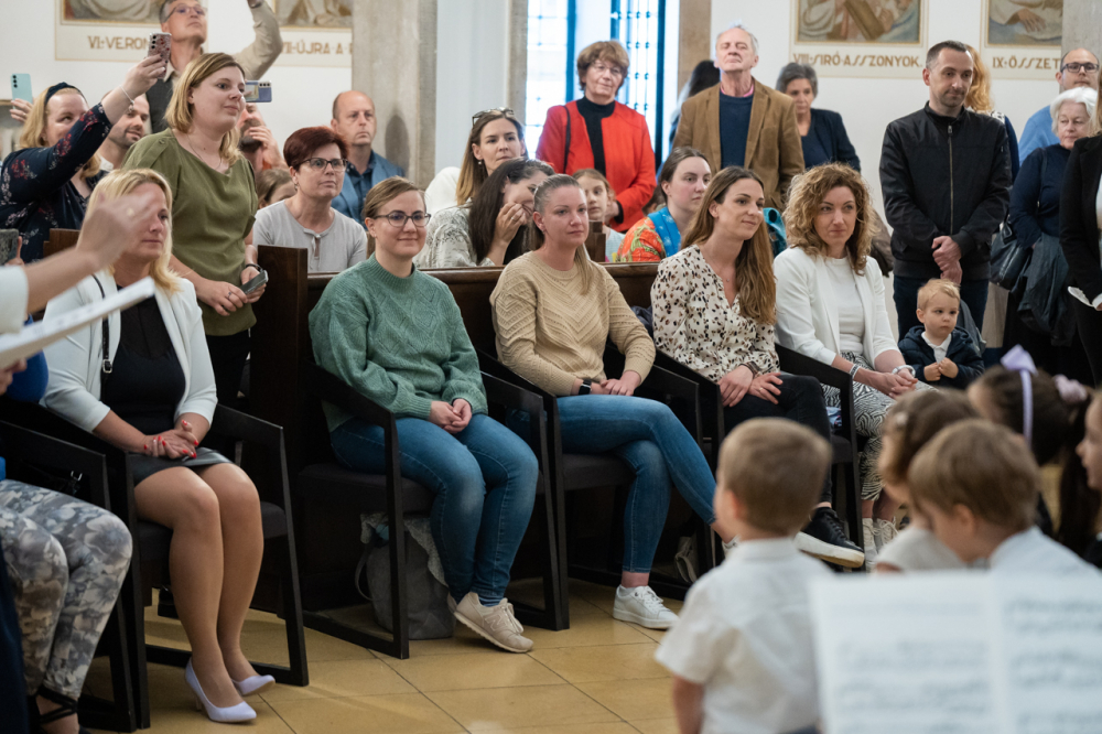 Zsibongással, gyermekkacajjal, édesanyákkal, nagymamákkal és édesapákkal telt meg május 6-án Pécsen a belvárosi templom, ahol a Szent Mór Iskolaközpont óvodásai ünnepi műsorral köszöntötték az édesanyákat.