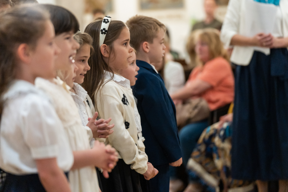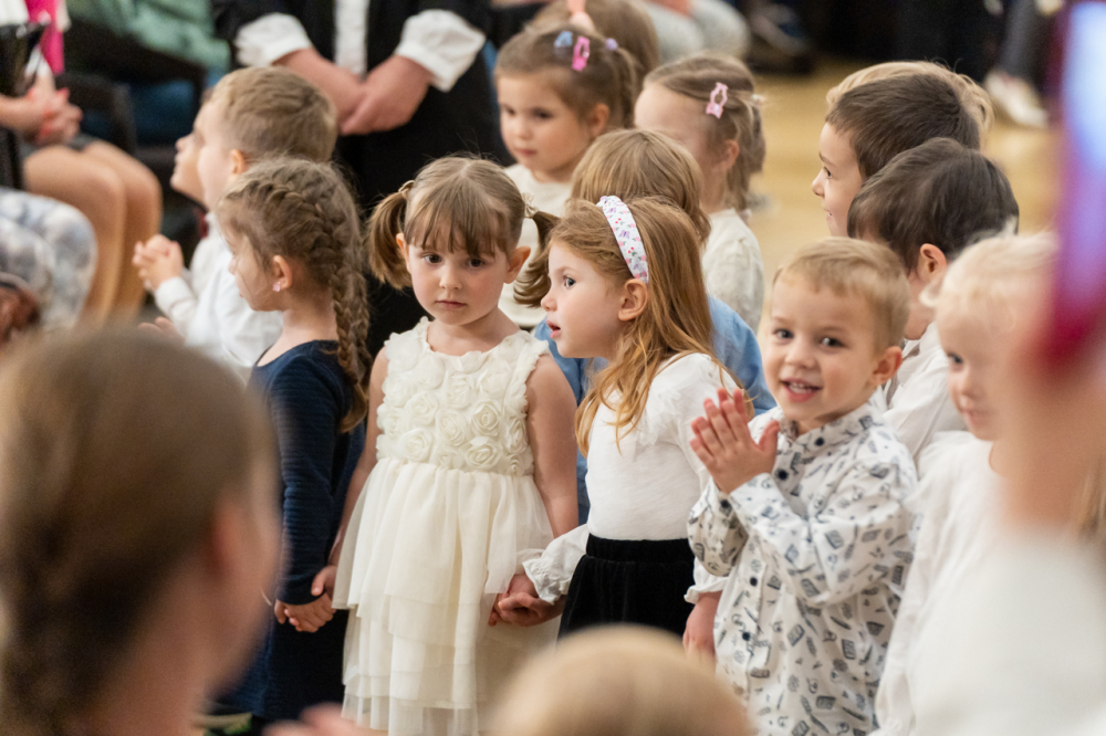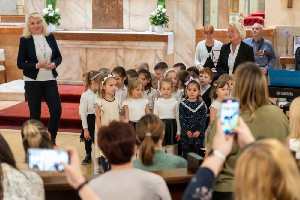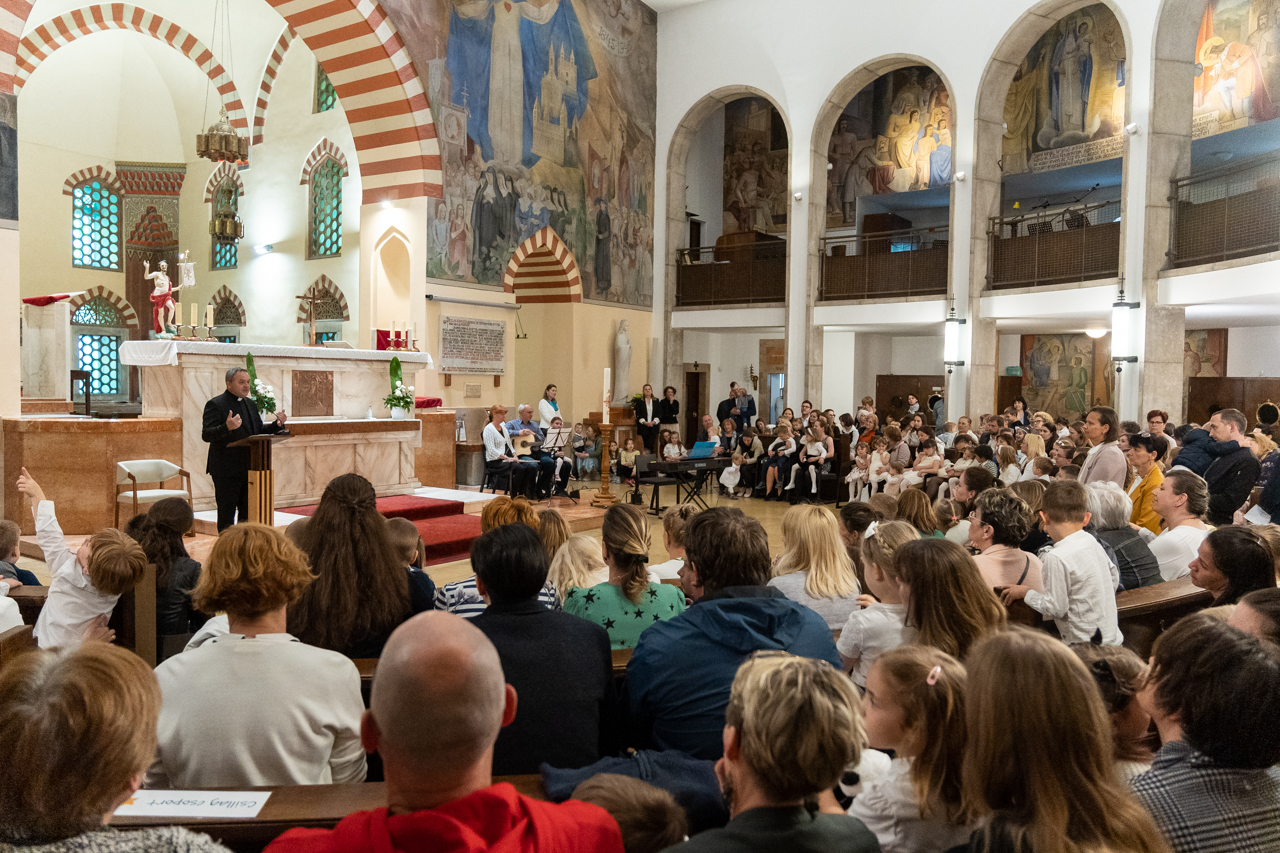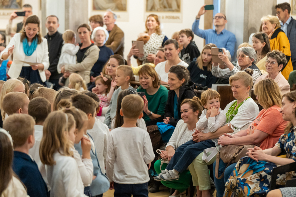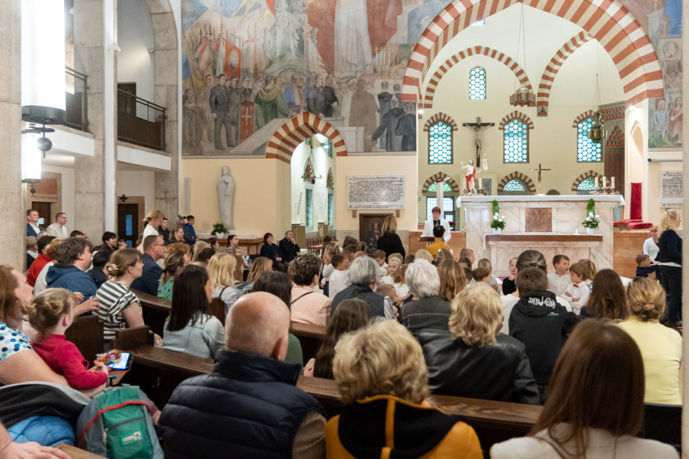 Zsibongással, gyermekkacajjal, édesanyákkal, nagymamákkal és édesapákkal telt meg május 6-án Pécsen a belvárosi templom, ahol a Szent Mór Iskolaközpont óvodásai ünnepi műsorral köszöntötték az édesanyákat.