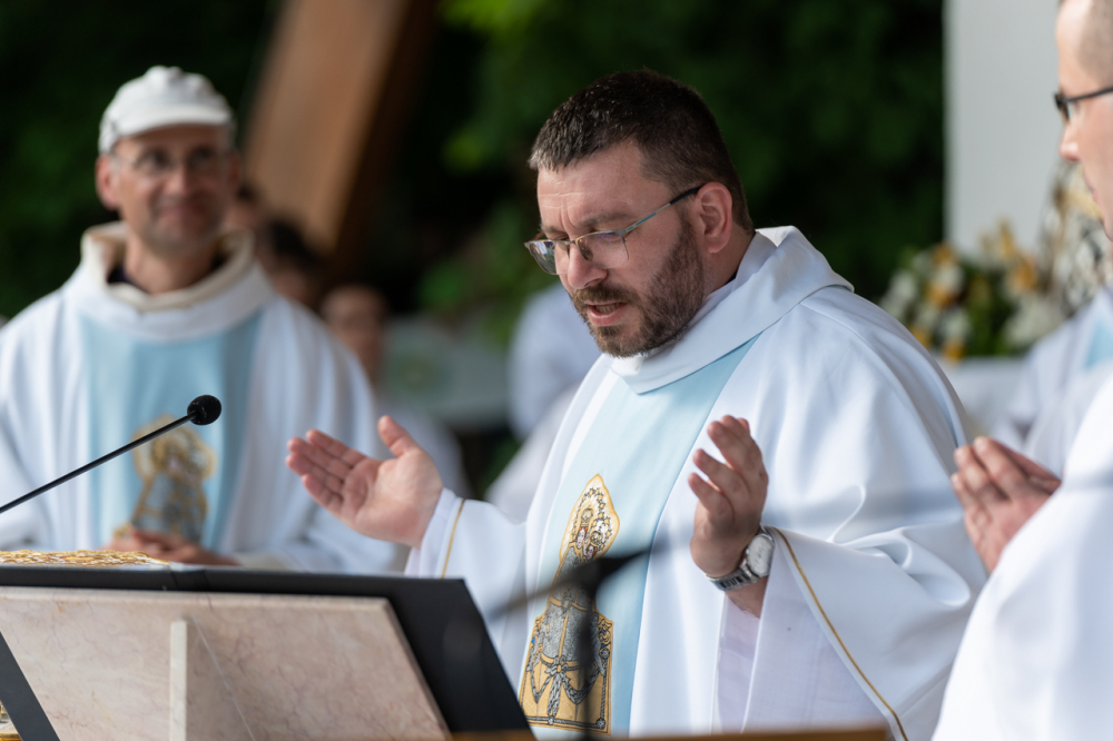 Itt vagyunk a gyűdi Szűzanyánál, az anyai szeretet és jóság titkánál. Az apák szeretete megvéd és megőriz minket, az anyák szeretete pedig meggyógyít és tovább vezet minket. Ez a kettő adja életünk erejét és biztonságát, ezzel a bizonyossággal jöttünk ide és ezzel az erővel kell továbbmennünk innen.