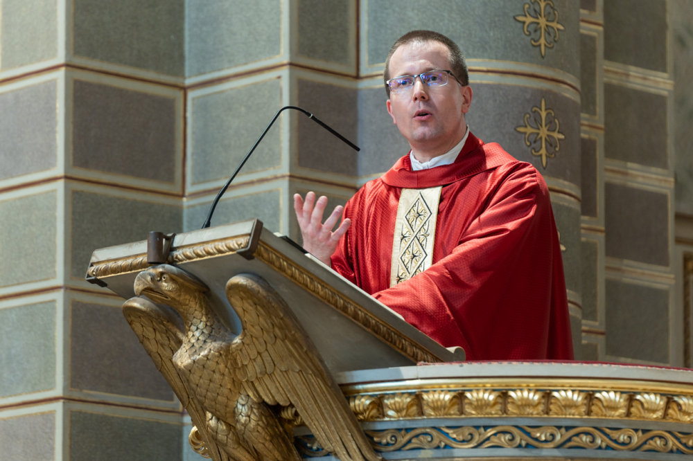 Máger Róbert, a székesegyház plébánosa szentbeszédében felidézte a néhány nappal korábbi papi zarándoklat kegyelmi adományait, melyekért a hívő ember Rómába zarándokol, felkeresi az apostolok tiszteletére felszemtelt templomokat és imádkozik a vértanú szentekhez.