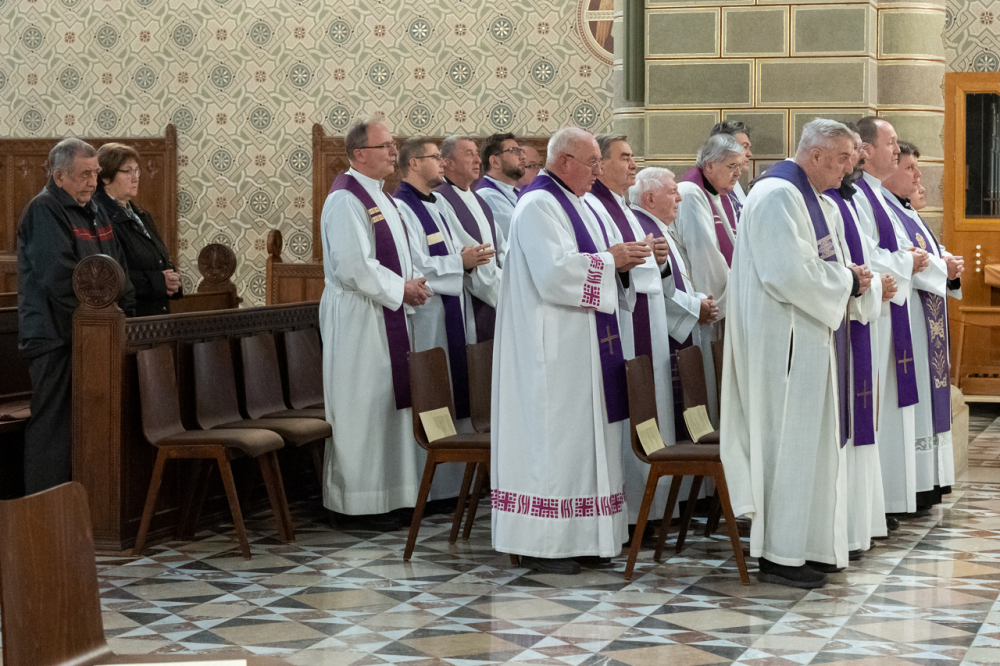 Juhász Tibor az oltár szolgálatában, Isten szavára figyelve élte az életét. Az Úr örök hangja, örök szeretetének békessége és öröme kísérje őt a túlvilági, örök életben. Ebben hitt, ezt hirdette, ez a közös reményünk, ezért fohászkodunk – mondta köszöntőjében Felföldi László megyéspüspök.