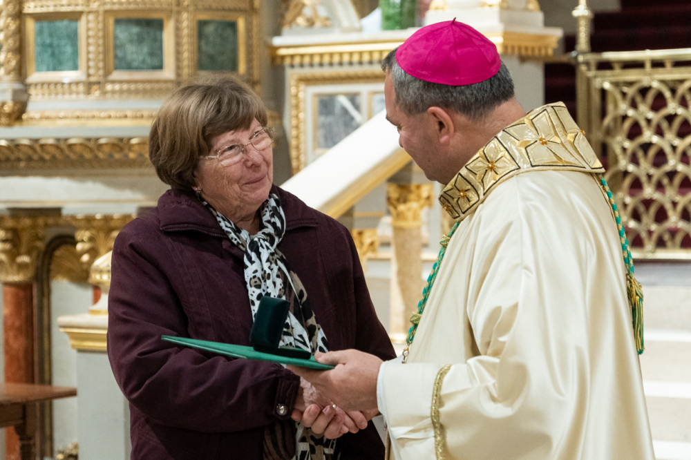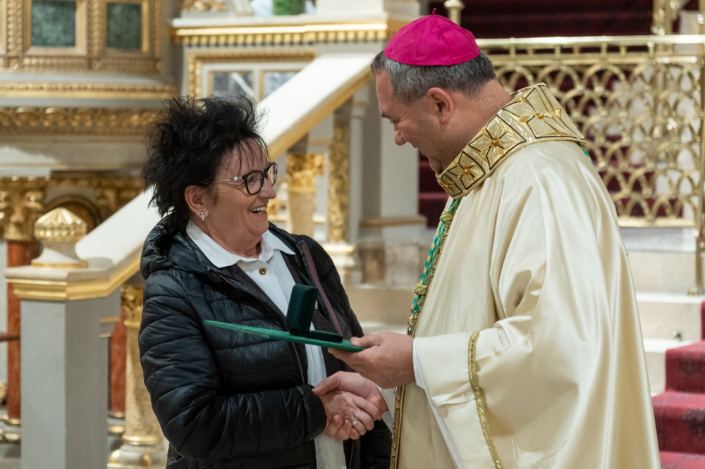 Felföldi László püspök a kitüntetettekhez fordulva úgy fogalmazott: „Fogadják a mi hálaadásunkat és köszönetünket azért az útért, azért a sok-sok évért, amit megtettek a saját egyházközségükben, a saját közösségükben és erősítsék meg azokat, akik tovább akarják vinni ennek a fénynek, ennek a szolgálatnak, az örömhírnek az éltető, életadó kincsét és biztonságát. Legyünk bátrak mi is önzetlenül, a sebeket eltakarva, örömmel Krisztus mellé állni, az egyházközségeink mellé állni” – zárta a köszönet szavait a püspök.