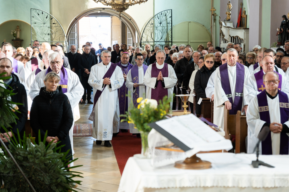 Felföldi László megyéspüspök rövid köszöntőjében úgy fogalmazott, hogy Bagi Sándor atya a halála előtti vasárnap az Ige és az Eucharisztia asztalánál még átvehette az Úrtól azt, amiben hitt és amiben remélt, amelyért halála utolsó percéig imádkozott. Halála óráján pedig a rózsafüzér titka maradt a kezén – mondta a püspök.