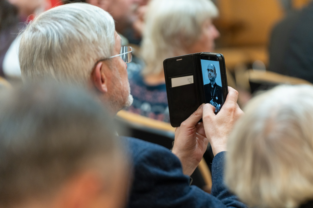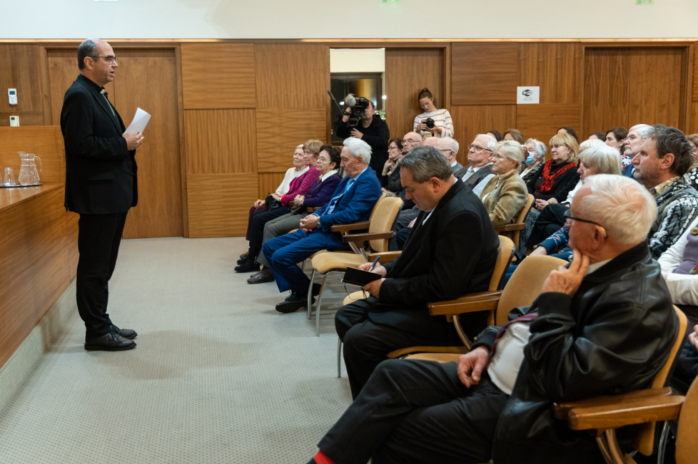 Az ünnep ajándék, nem mi emberek hoztuk létre, nem a reklámok, a karácsonyfa, az ajándékok jelentik, hanem az ünnep valódi ajándéka odafentről jön, a gyertya szelíd fényéhez hasonlít, amit Isten gyújt lángra a történelemben és ma is a szívünkben – kezdte előadást Székely János püspök, majd hozzátette, a föntről jövő ünnep befogadásához nyitott szív kell, csak ezt tudja egészen betölteni. Az advent erről szól, hogy kinyitjuk a szívünket az ég felé.