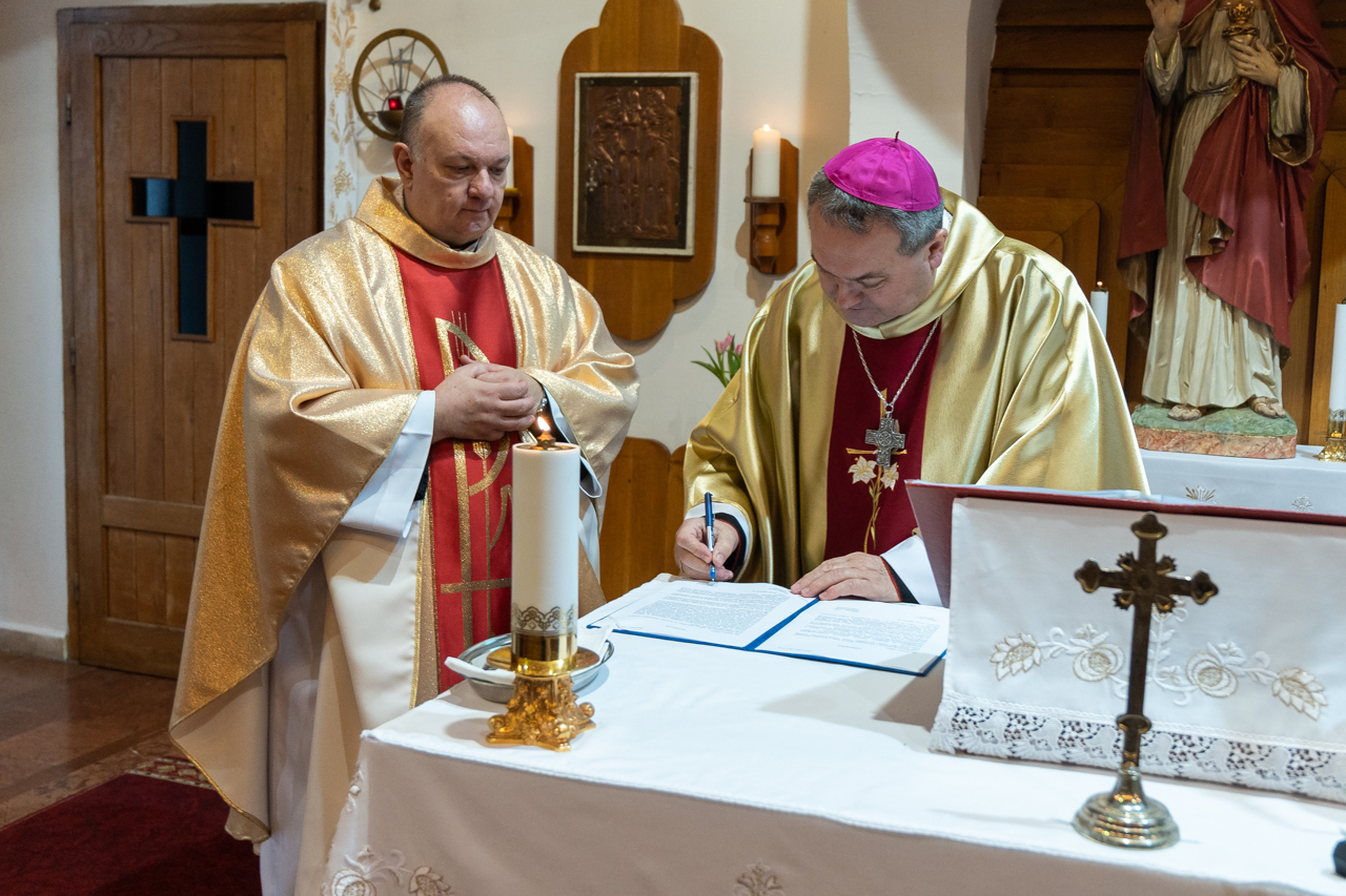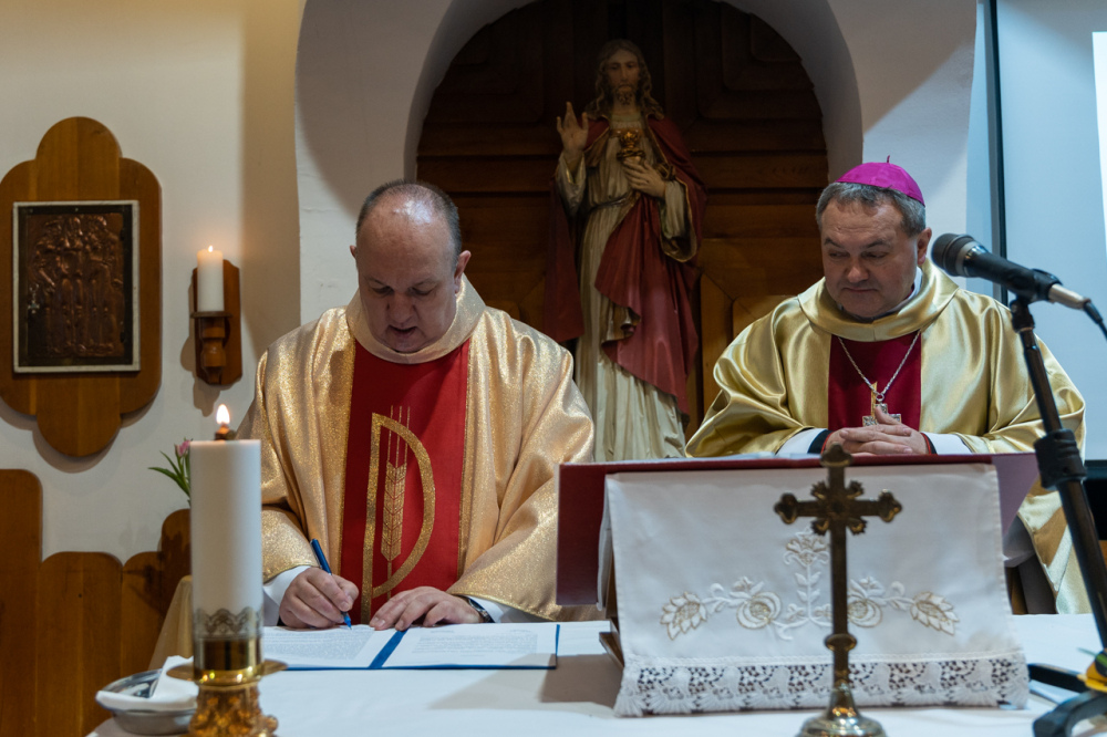Az ünnepi beiktatás szertartásában Kárász Gábor ígéretet tett a plébánosi kötelességek teljesítésére, majd a püspöktől átvette a harkányi Jézus Szíve templom kulcsát.